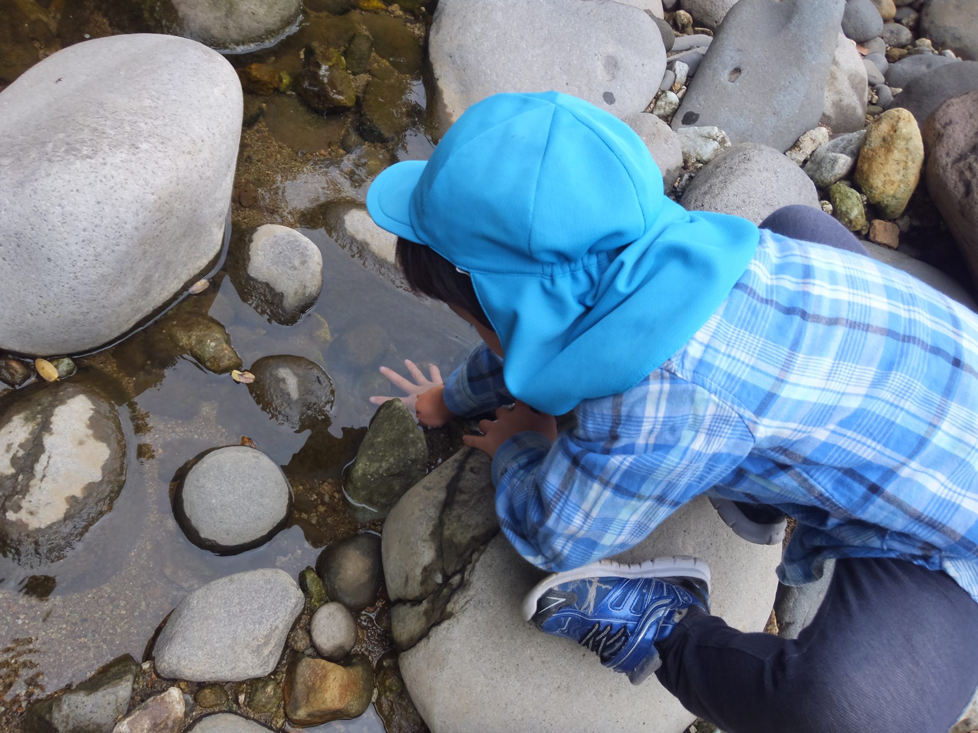 石の下に小さな魚を発見しました。