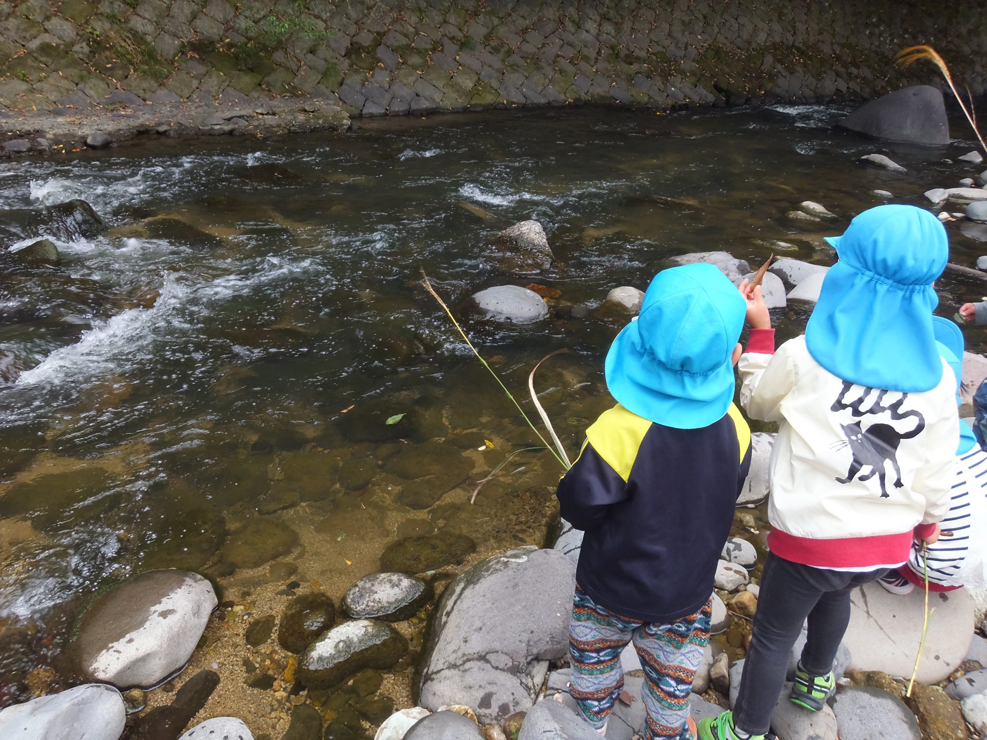 流れる様子を楽しむ子ども達。