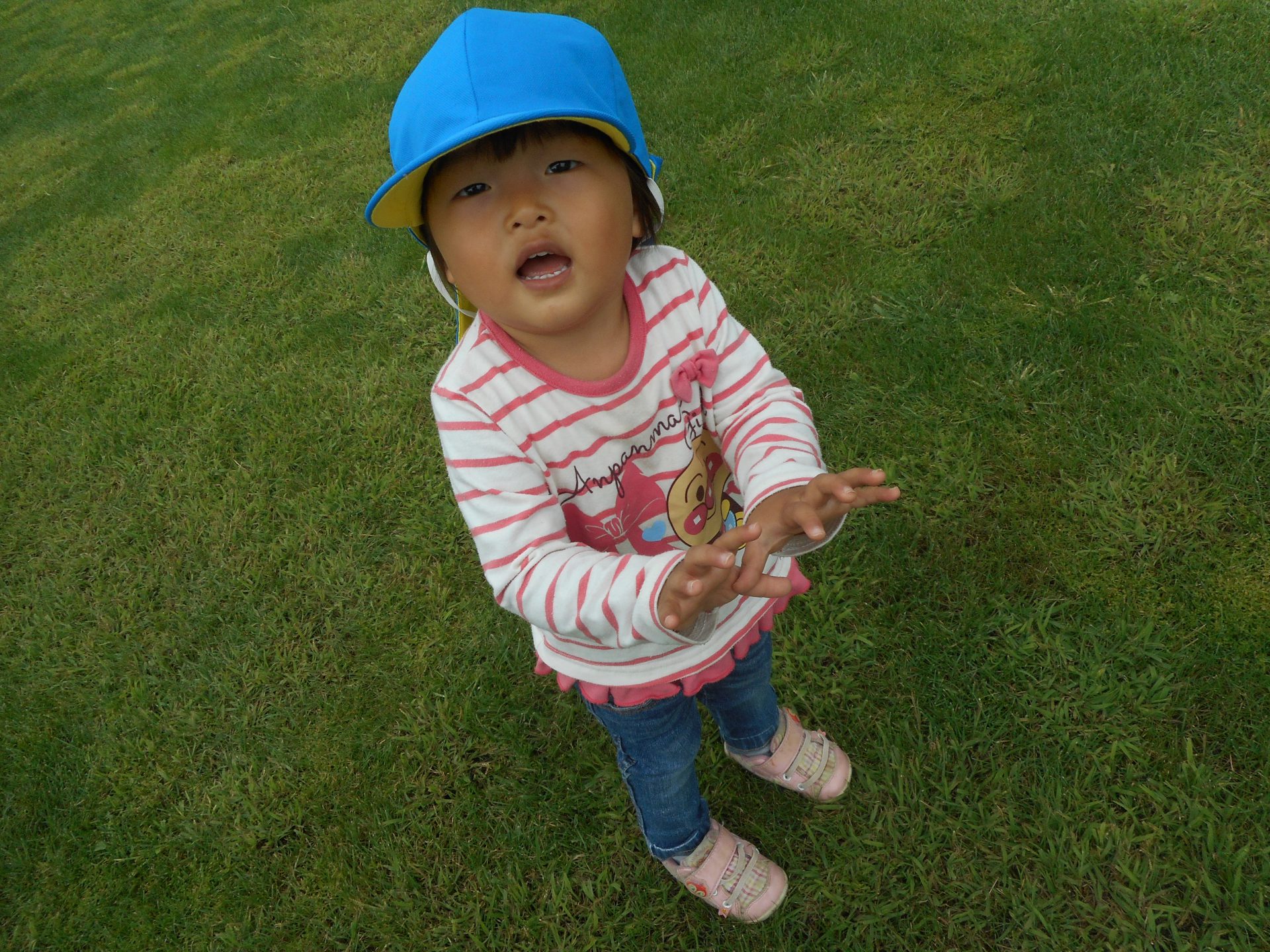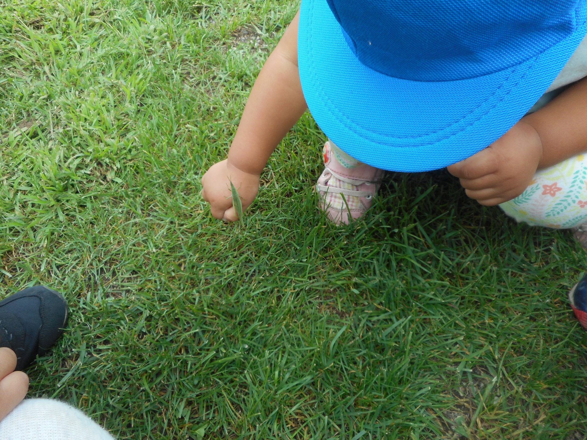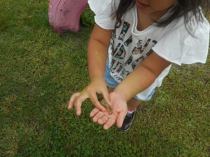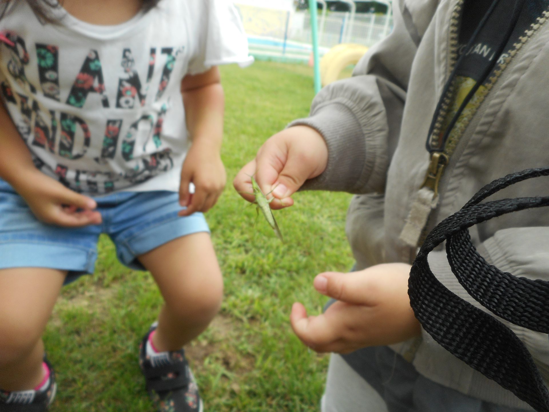 またバッタ、いた! 手にくっついた! くすぐったいね。