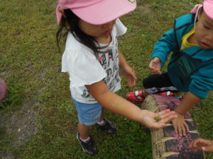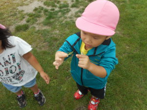 蟻ひとつとってもサイズは大きめの西部こども園で毎日が発見の未満児さんです。
