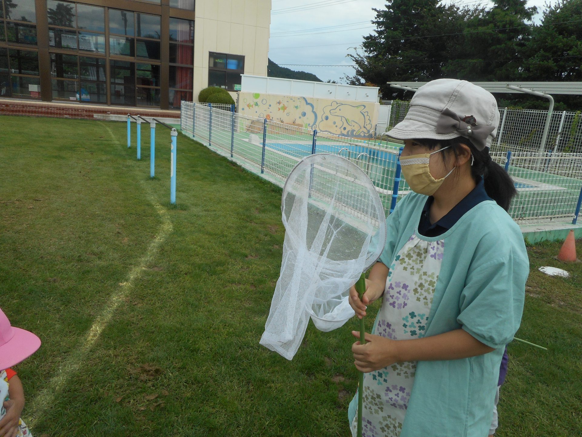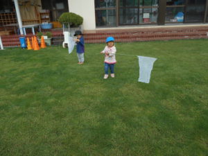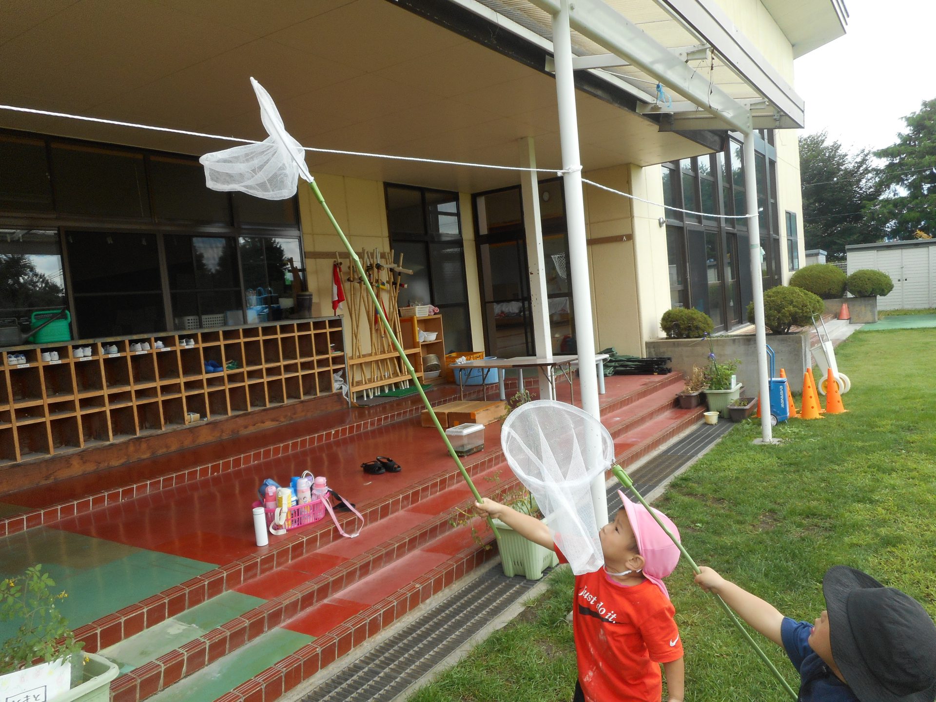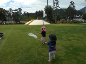 虫とり名人「あーせんせいおねがい!」 「トンボは横に ちょうちょは縦に!」網を動かすんだよ。 「へぇ~」