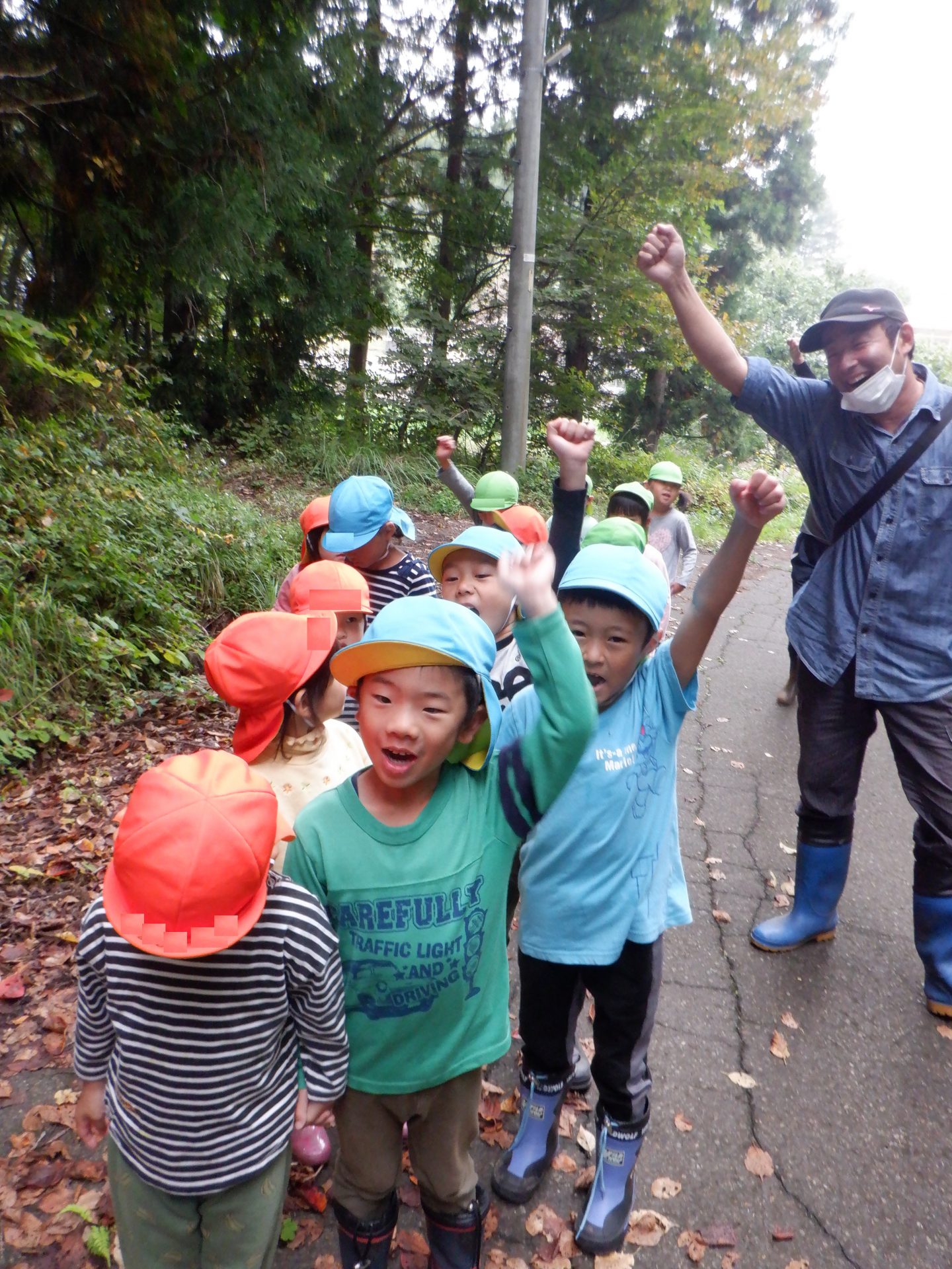 「大っきいおいもを掘るぞ〜!」 「お〜ぅ!」