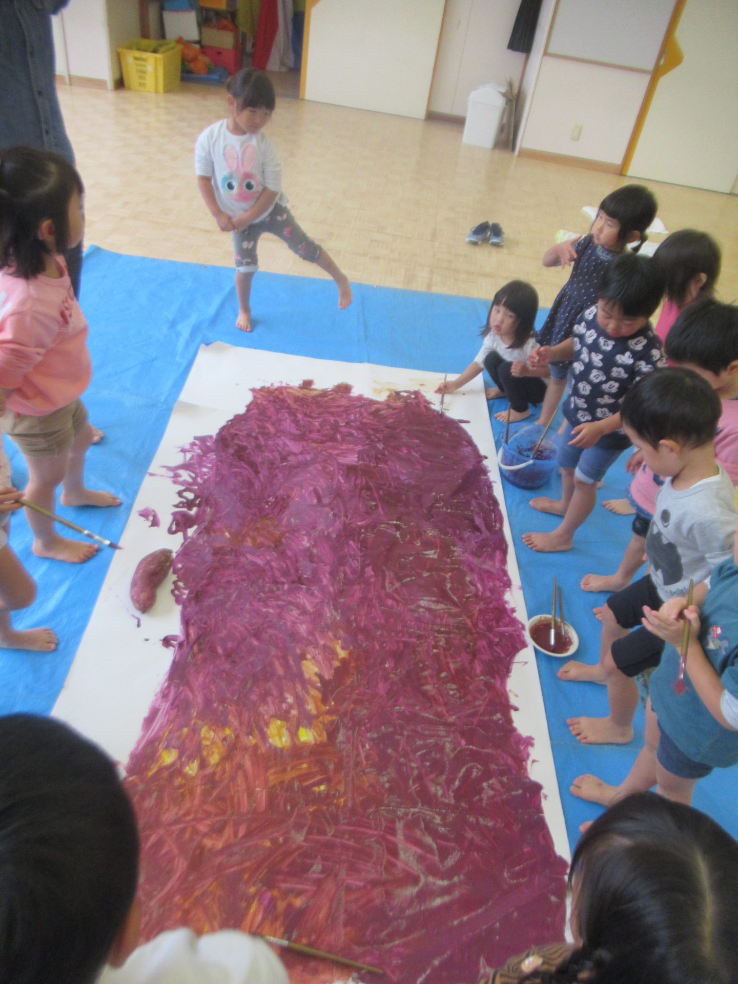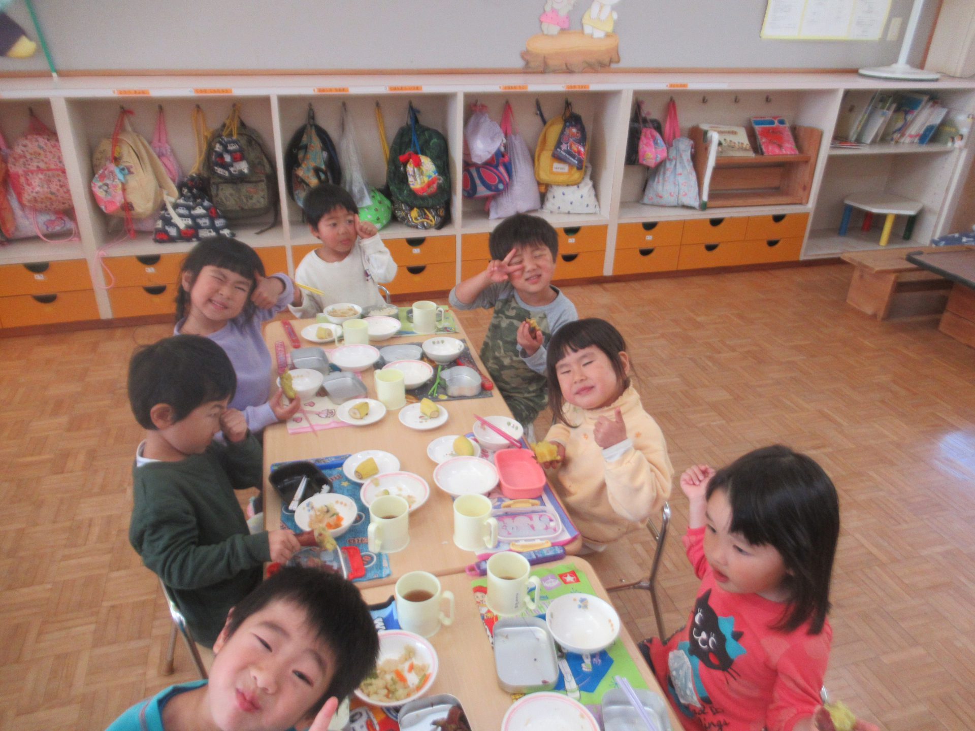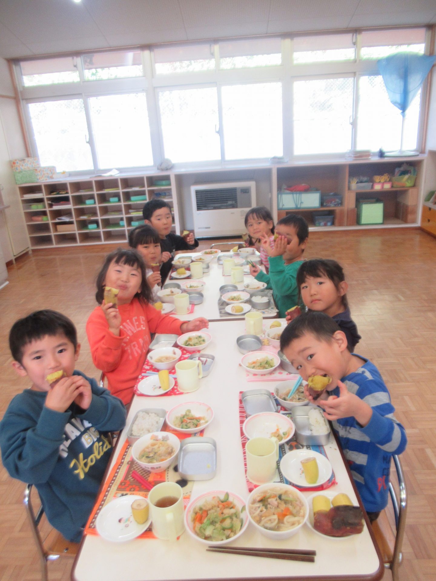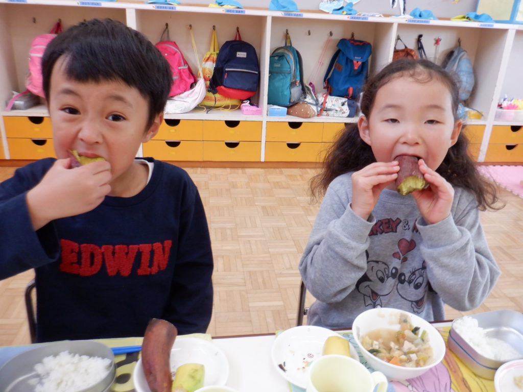 給食で大きいお芋を頬張りながら、「おいもサイコ〜!」と大喜びの子ども達でした。