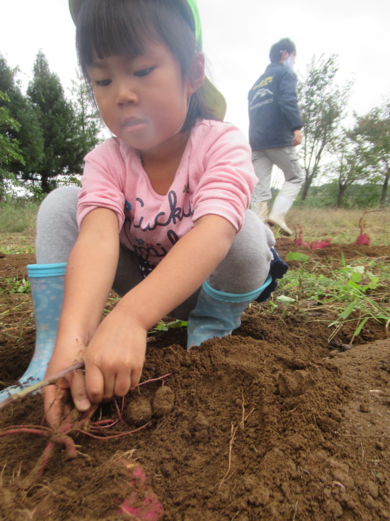 「すごーい!つながってる!」 どんどんおいもを掘っていく子どもたち!