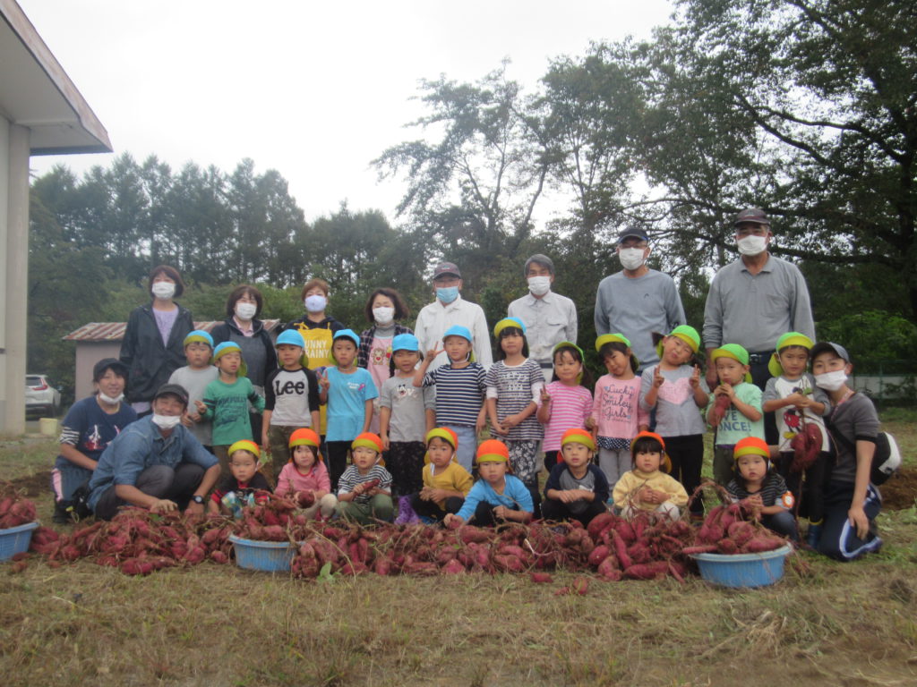 先日、古間保育園でも焼きいも会を行いました。今年はコロナの影響でさつまいもの苗は古間支館の方と一緒に植えることはできませんでしたが、さつまいも掘りは古間支館の方達に協力していただきました。