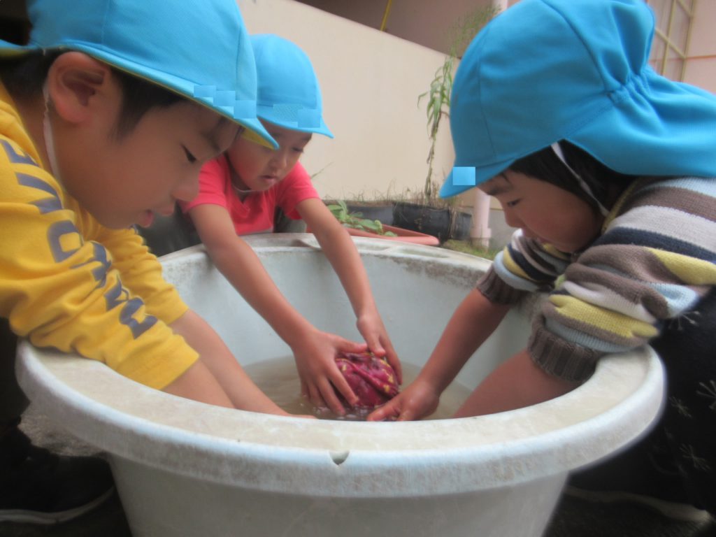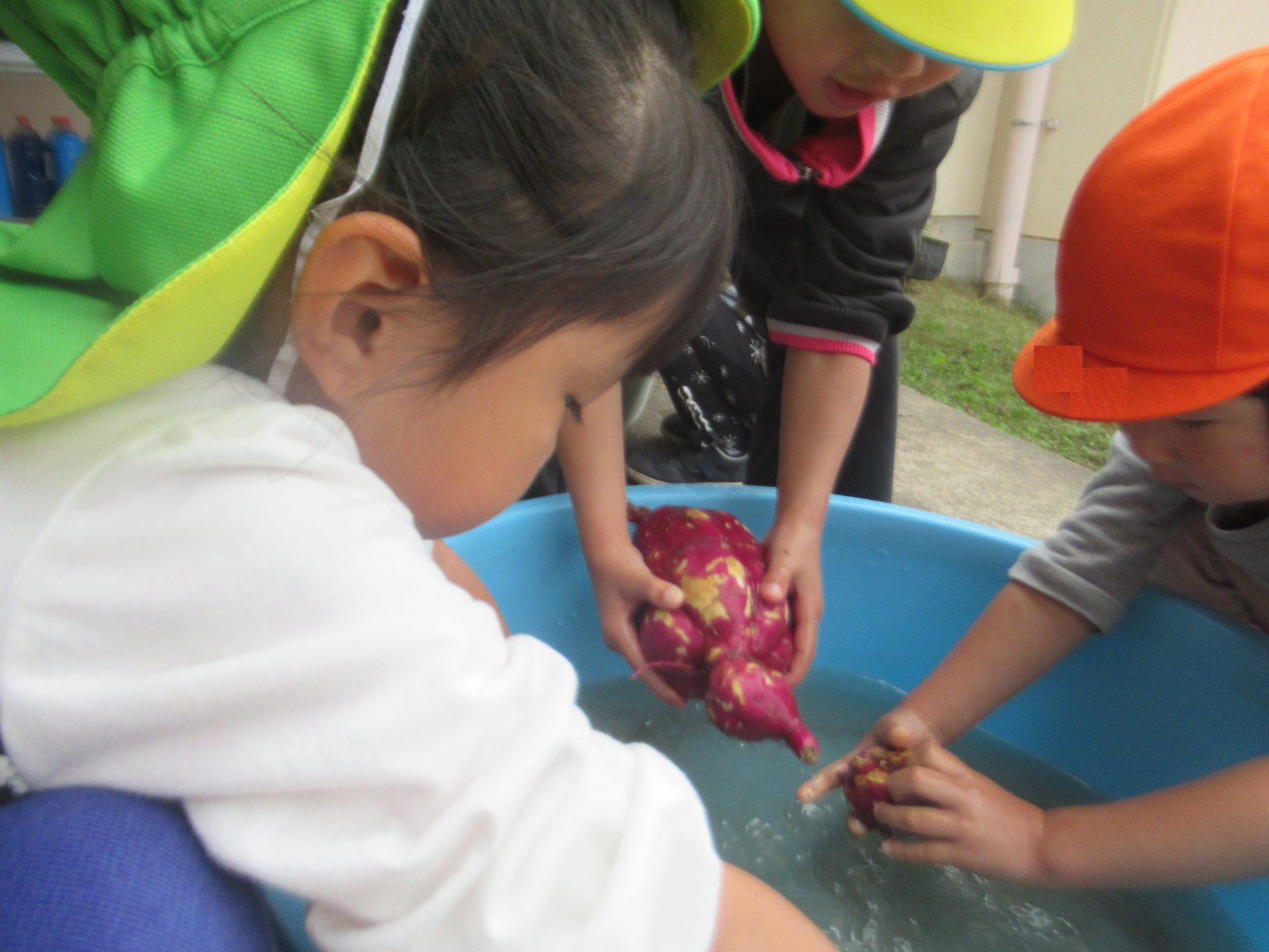 後日、持って帰ったさつまいもをみんなでキレイに洗いました!
