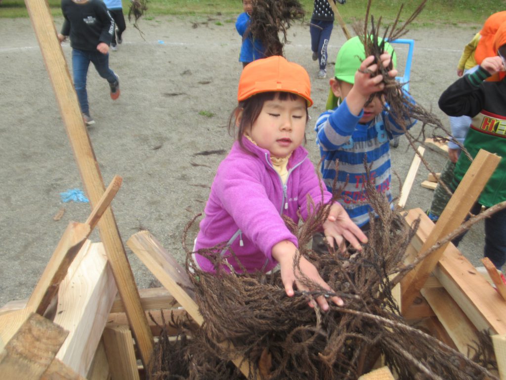 「こういう茶色いのがよく燃えるんだよ」と年下のお友達に教えてあげている場面もありました!