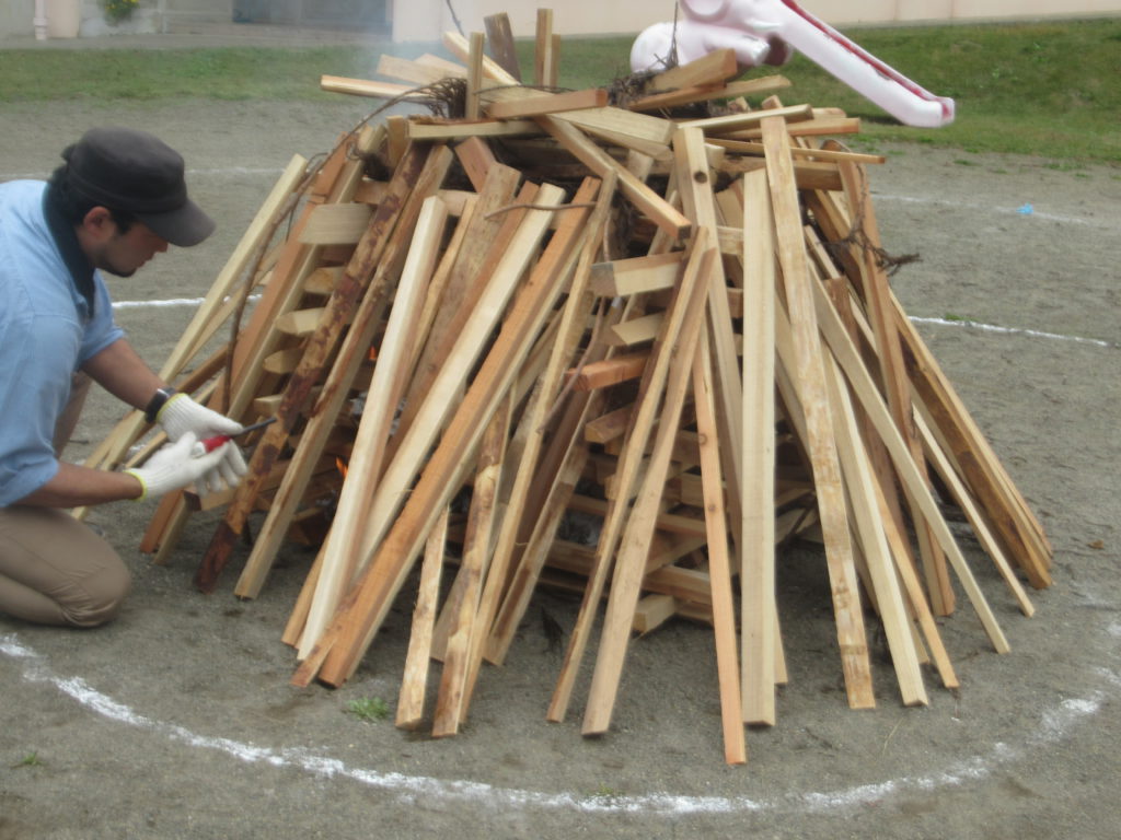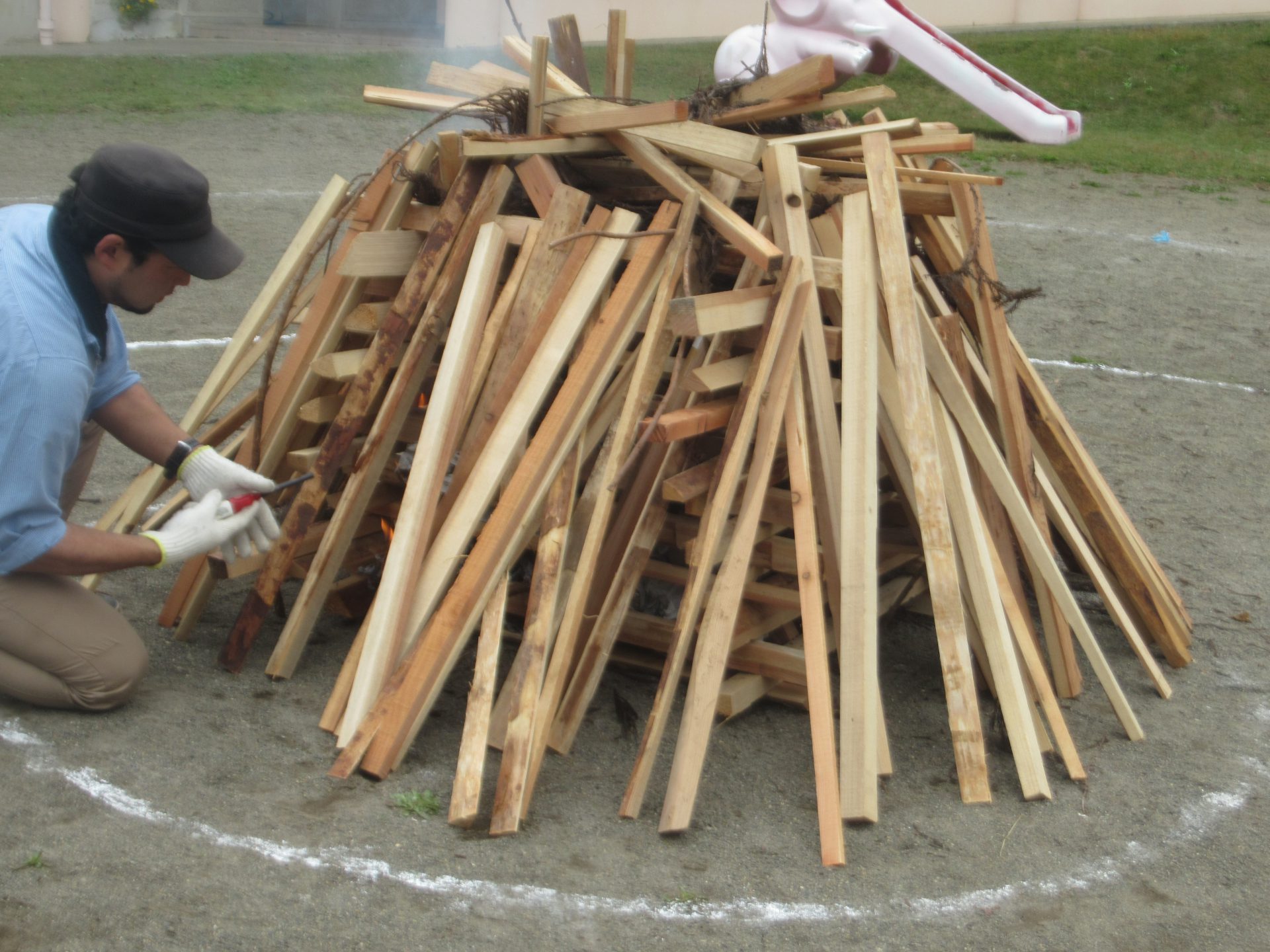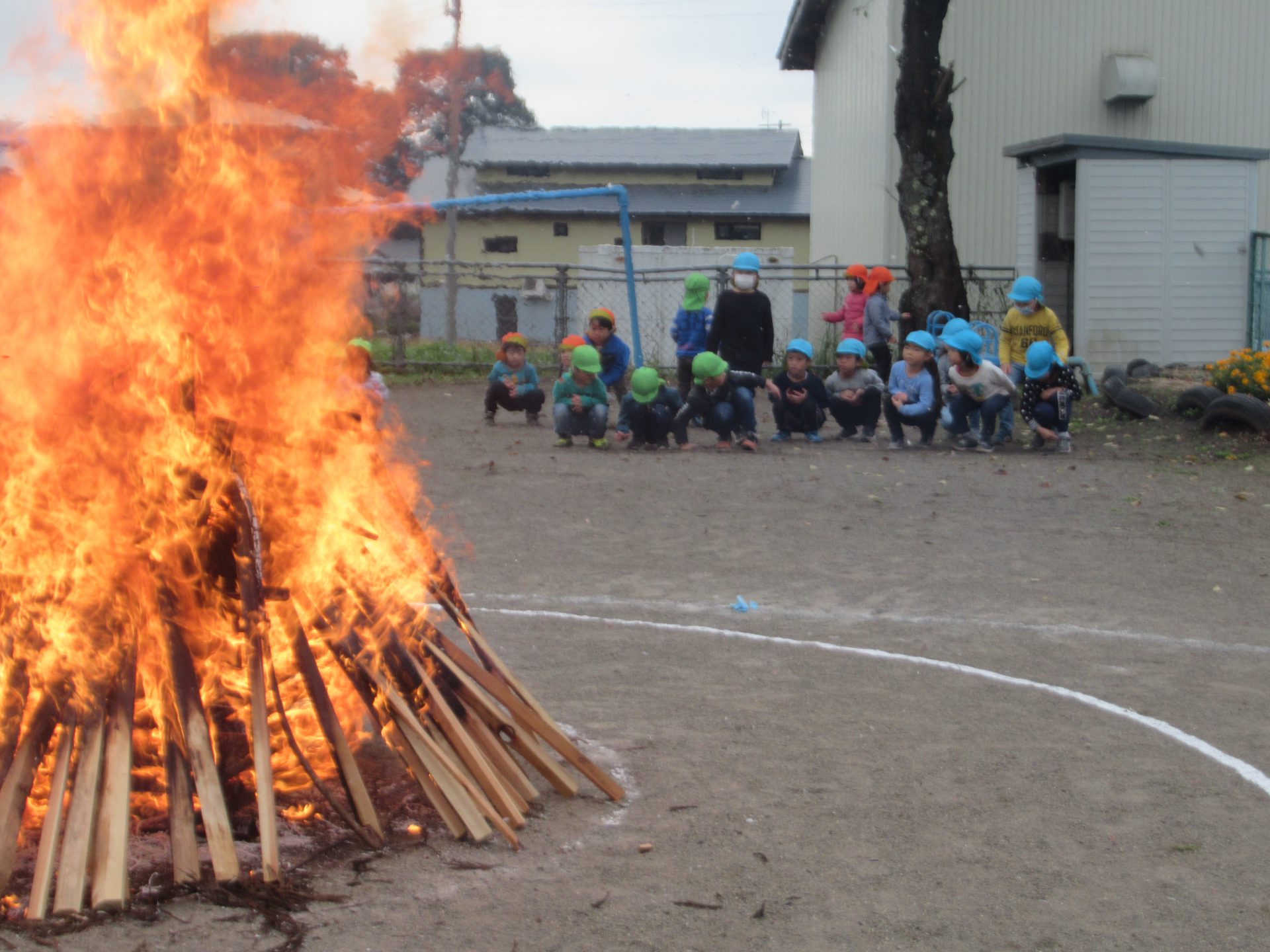 「煙がでてきた!」 「燃えてきたよ!」 みんなで固唾を飲んで燃えていく様子を見守りました。煙の立ち昇りから、燃え上がっていく火の変化ひとつひとつをよく見ていました。