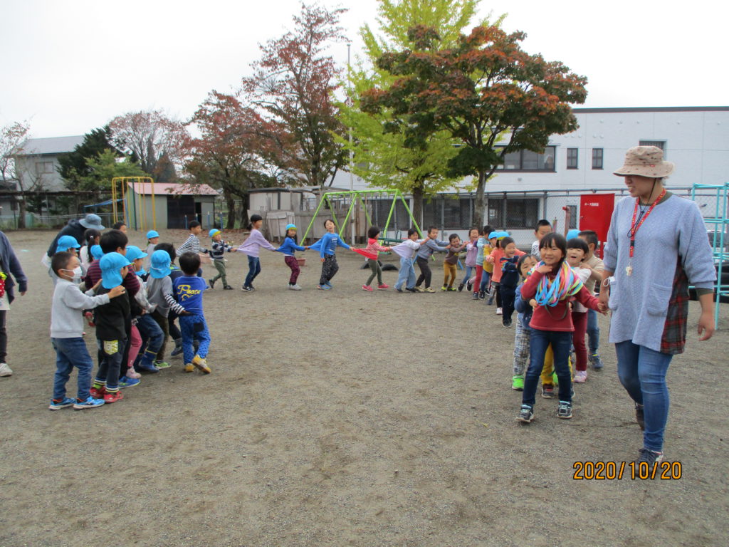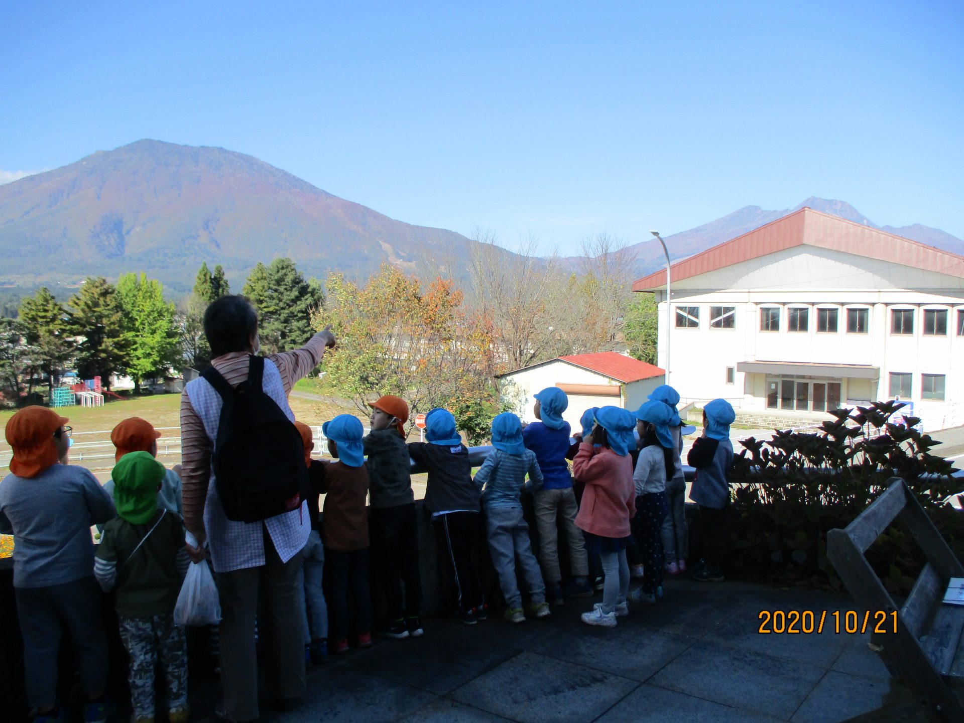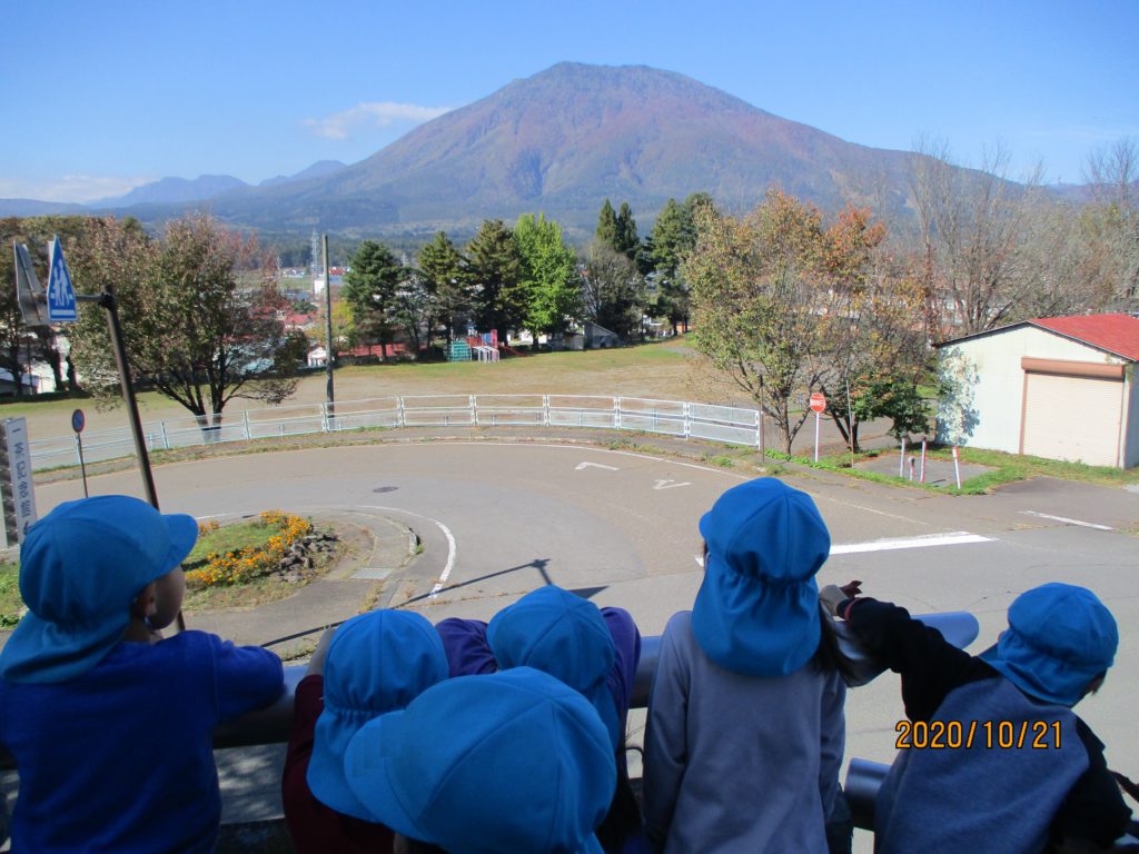 秋晴れの気持ちの良い日には山がきれいに見えます。信濃町の子どもたちの成長を見守ってくれている山々、さすが、年長さんになるとどれが何という名前の山か言える子も‼︎
