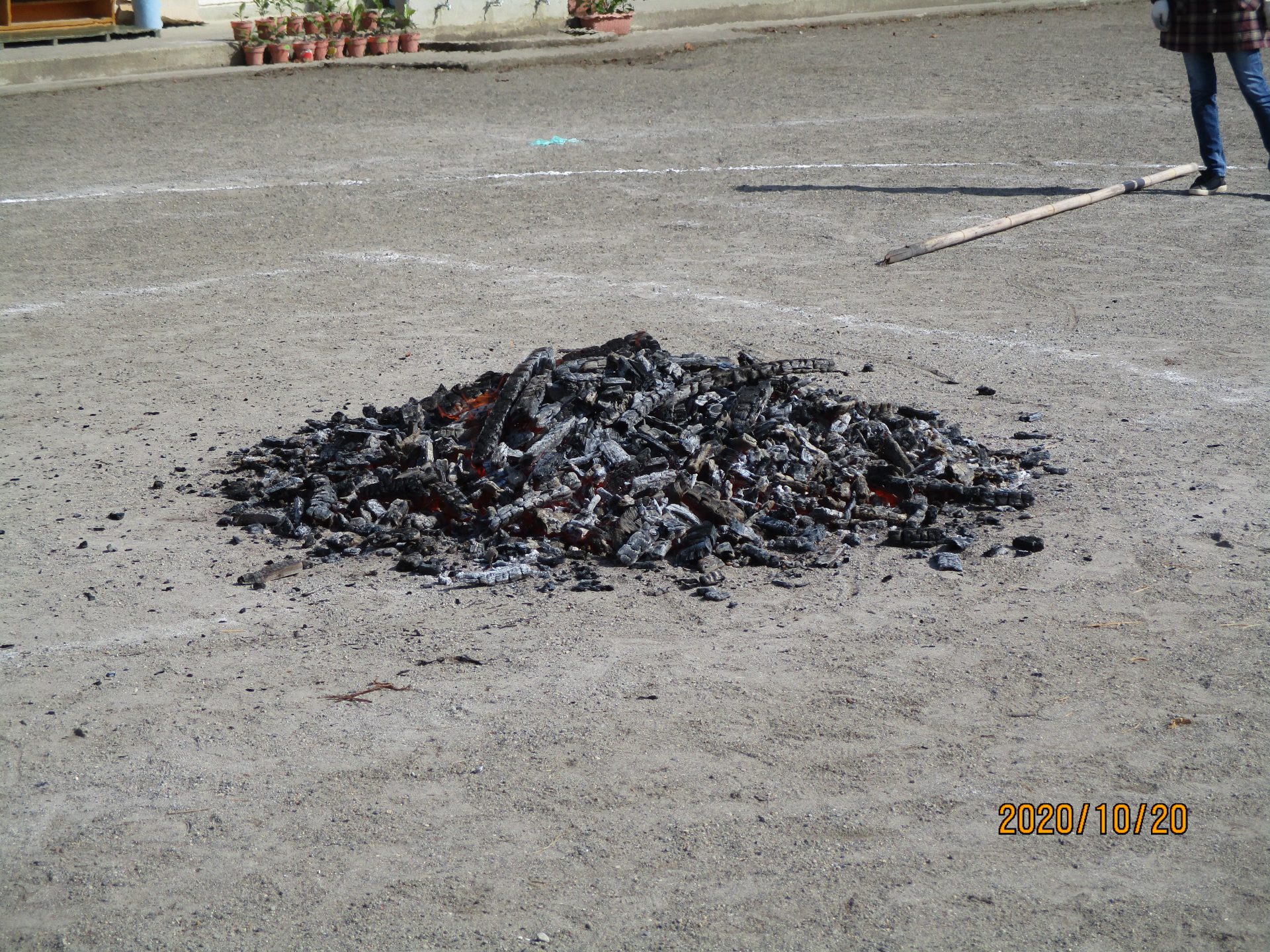 焼き芋ジャンケンの後に、おきになったのを見て「こんなに小さくなっちゃったの?」と不思議そうな子どもたち。