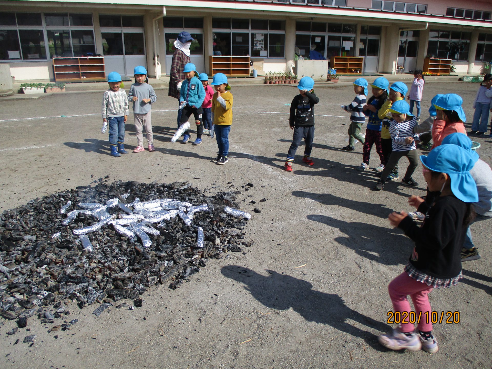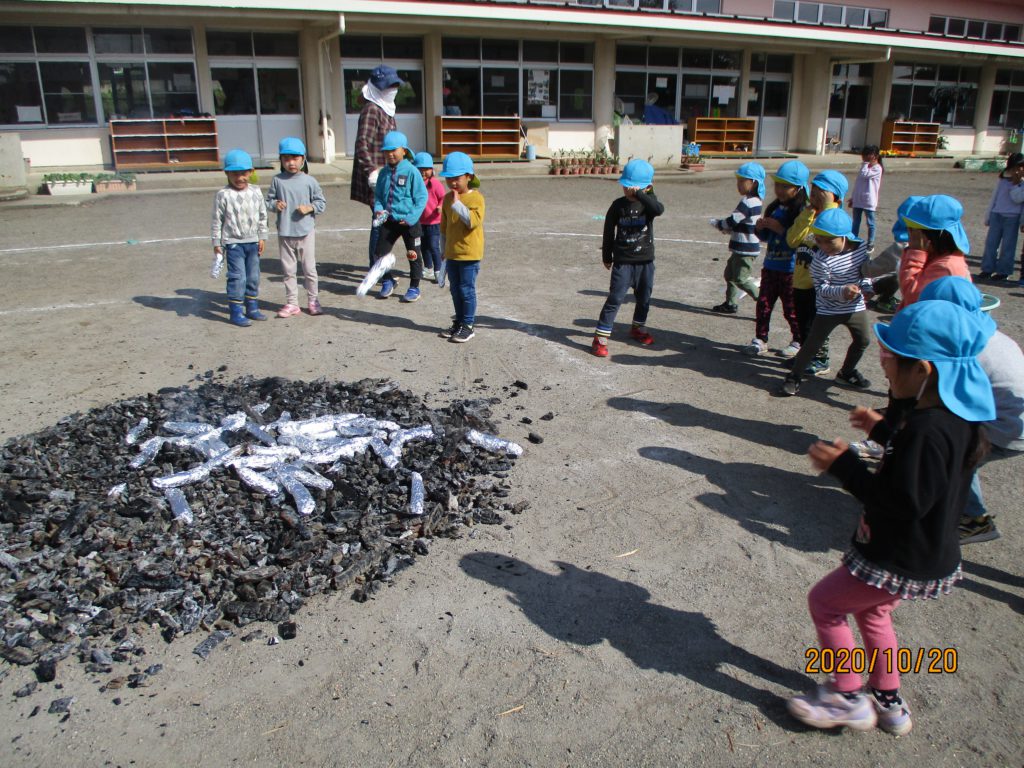 「焼きいもは、こんなに熱い中で焼くんだね」と体感したり、「でも焦げないのかなぁ?」と心配する子もいました。