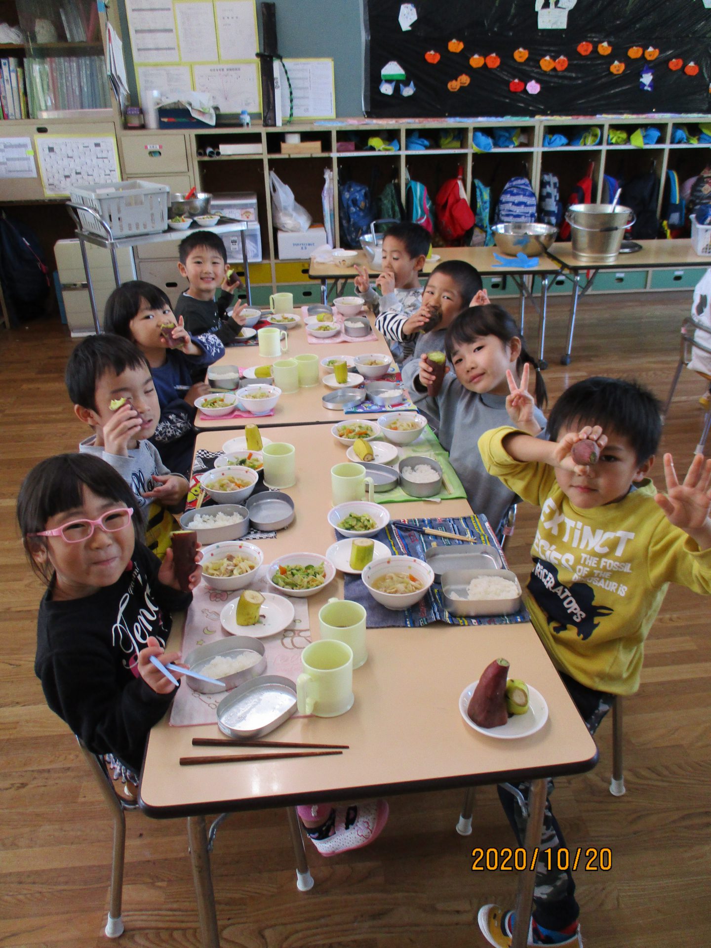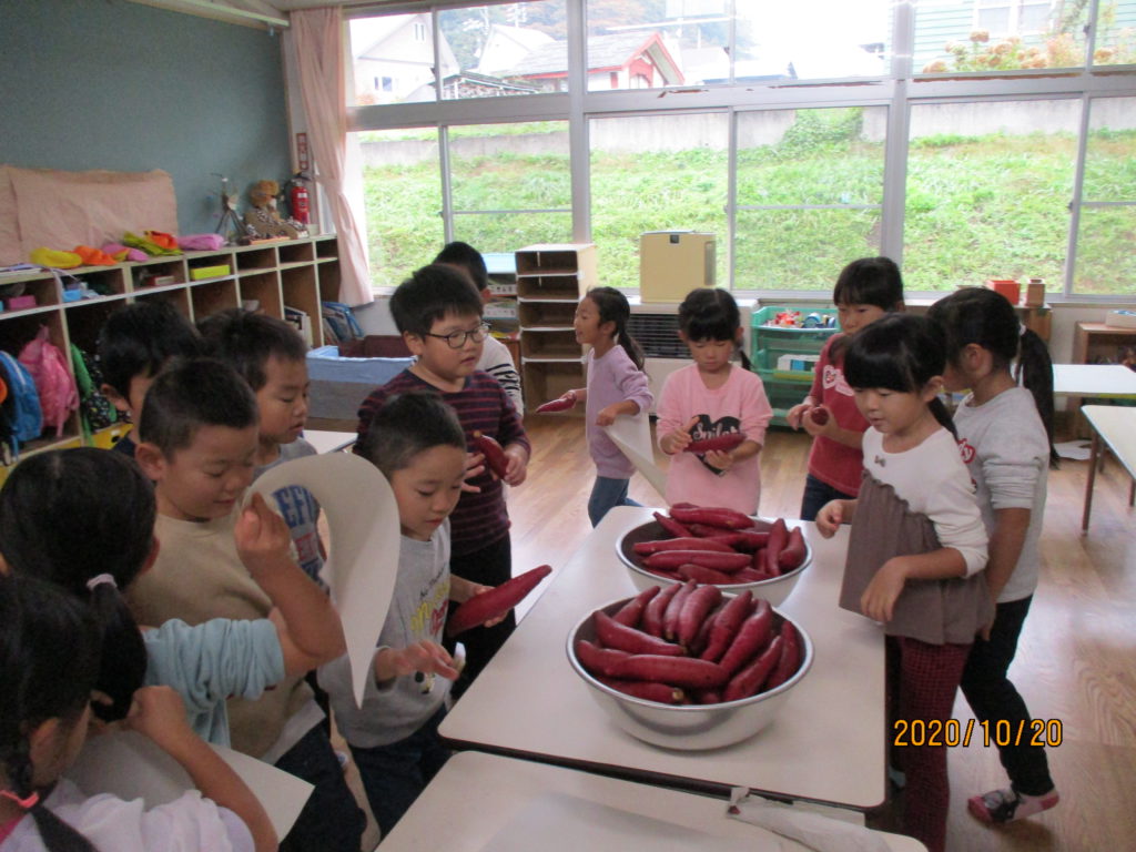 楽しみにしていたやきいもは給食と一緒に美味しくいただきました。
