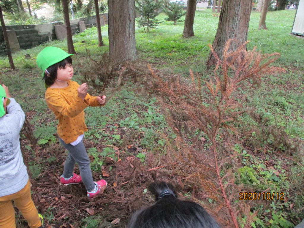 そこでみんなでお散歩に行き、杉の葉を集めました。