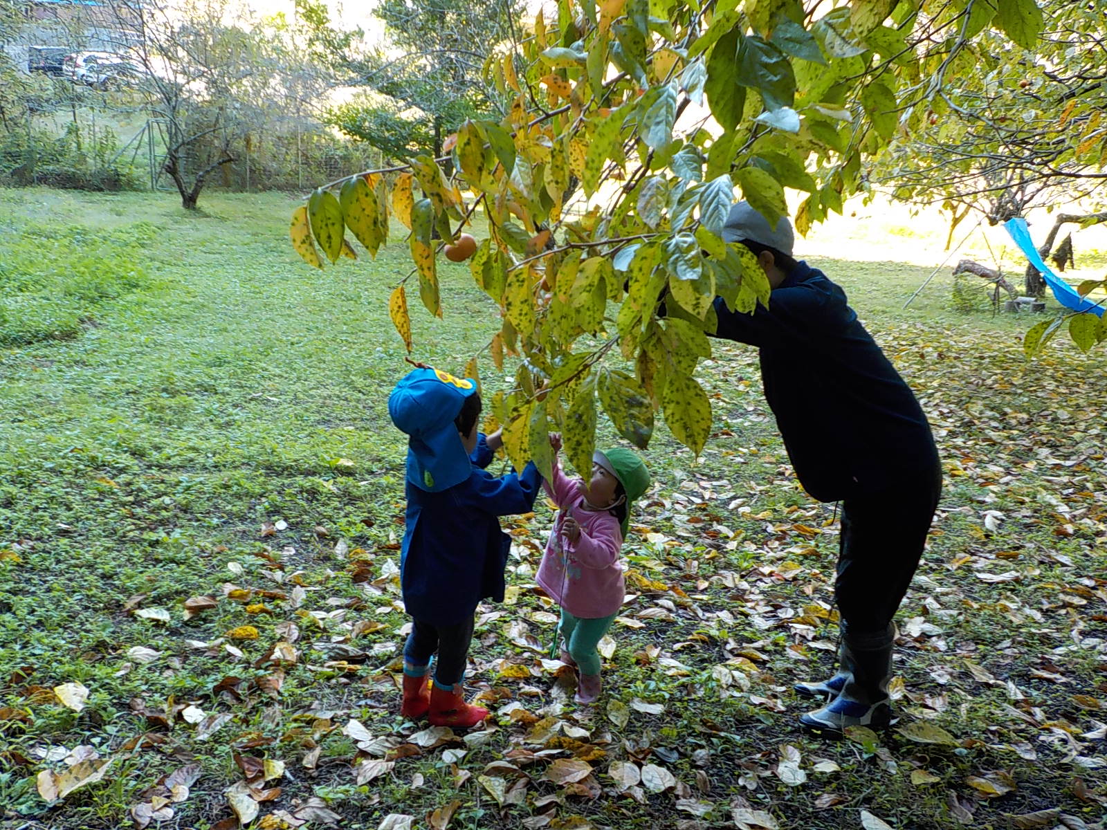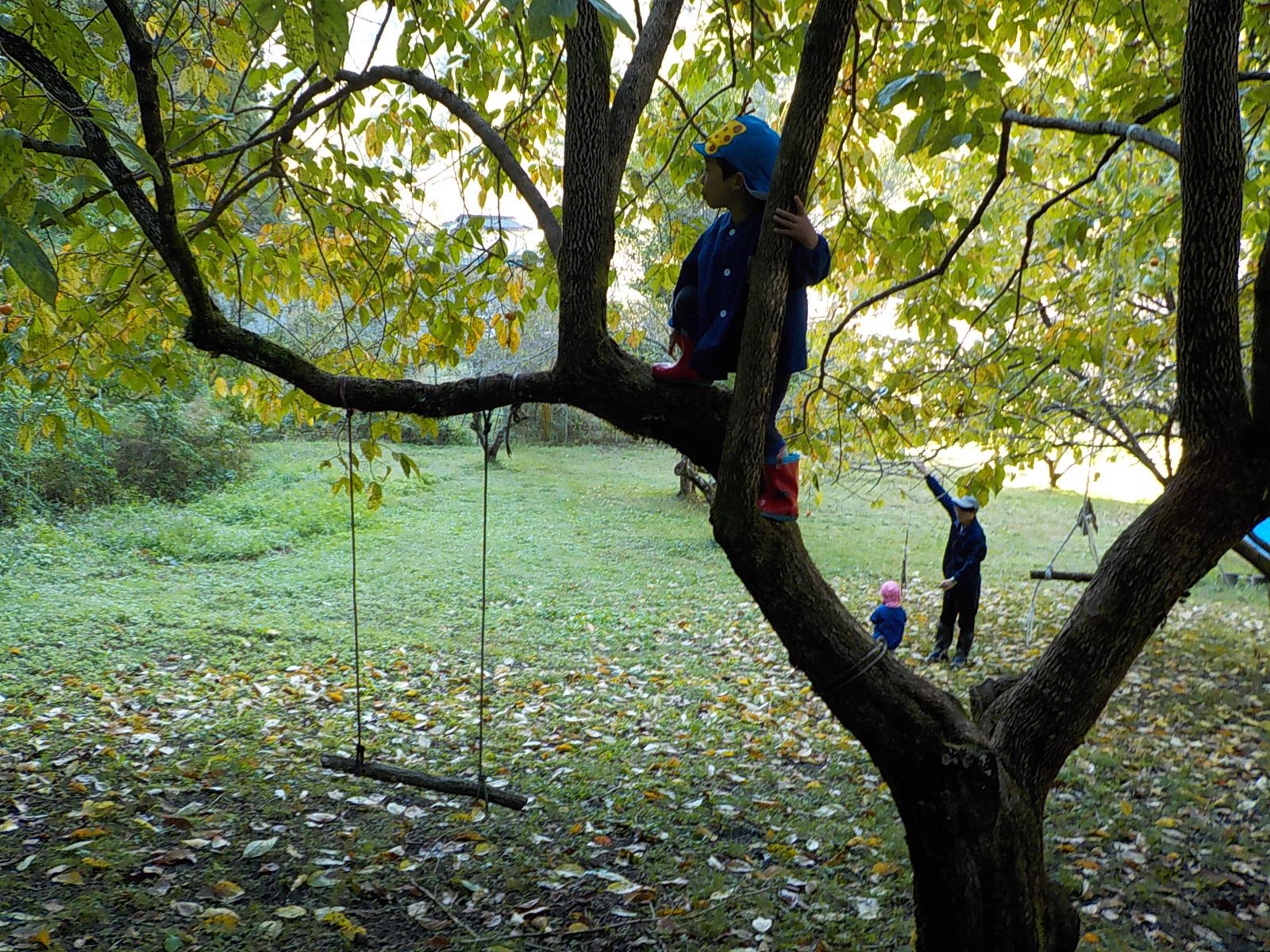 柿の木に登るのはお手のもの。