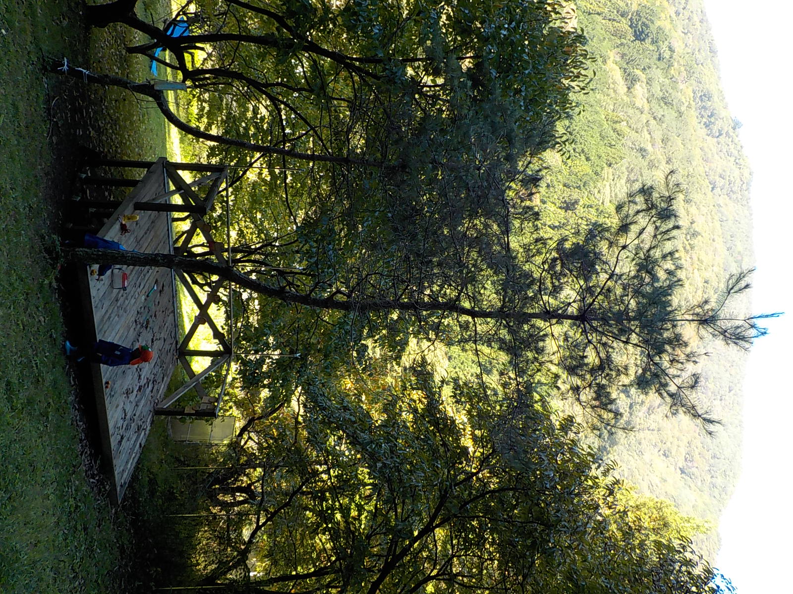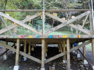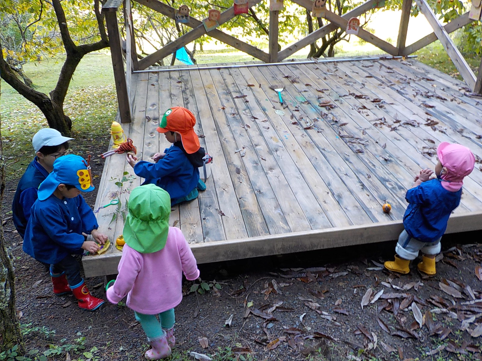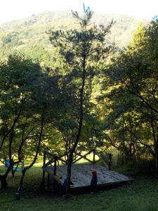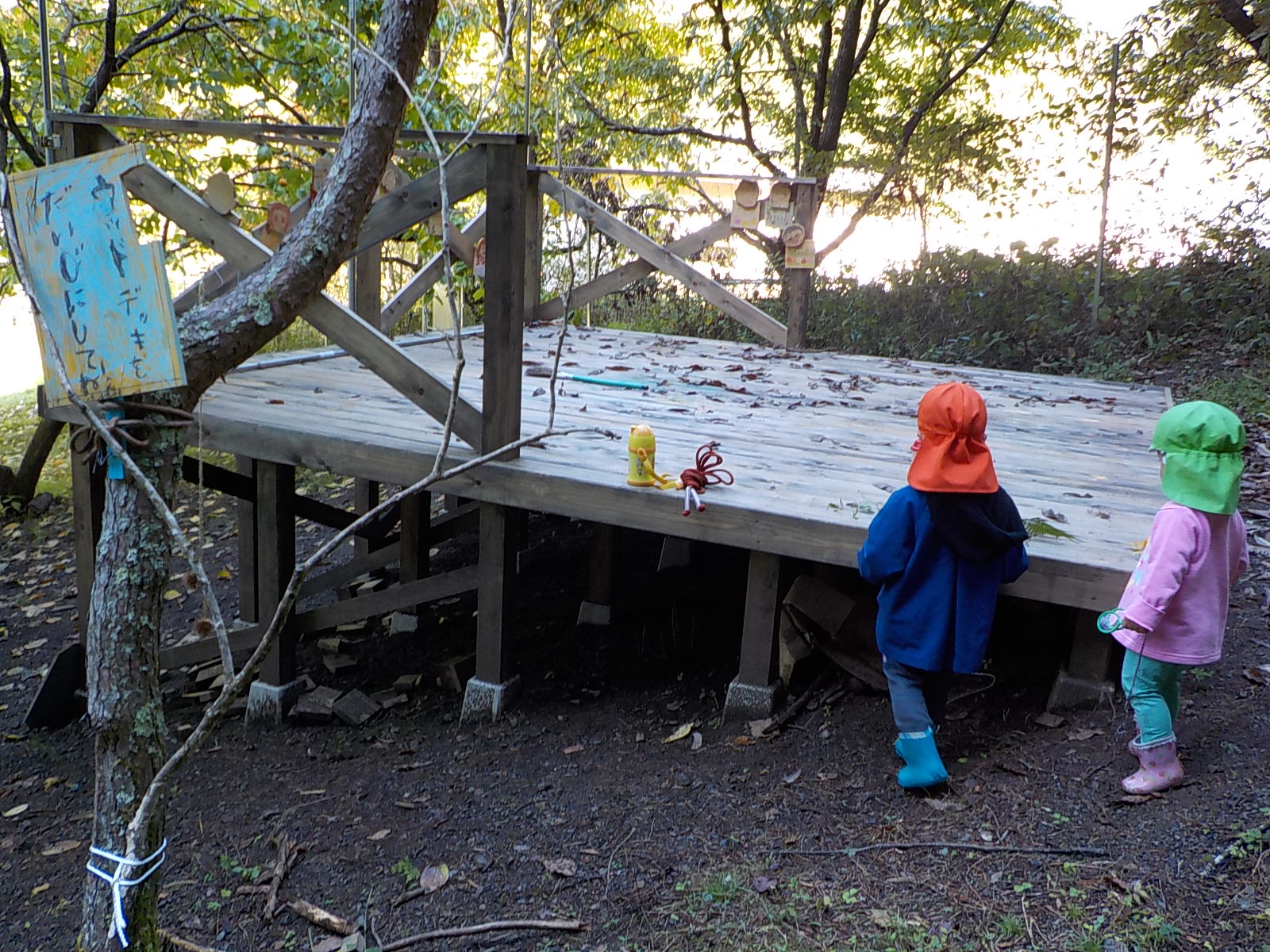 裏山には地域や保護者の皆さんで作ったウッドデッキがあります。8月に完成したばかりです。