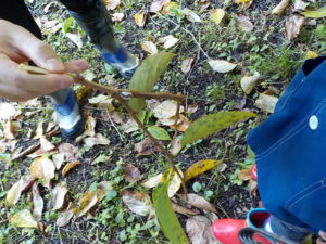・見つけたものは自分で遊びの道具に変身。裏山はどんぐりこそありませんが、草花も種類が豊富にあり、お茶摘みをしたお茶の木もあります。また夏とは違った植物の発見ができたのではないでしょうか。