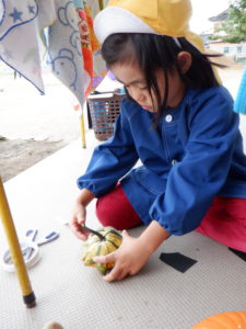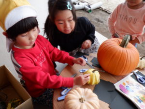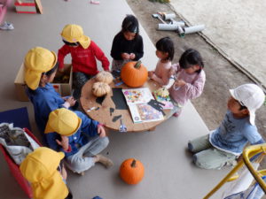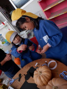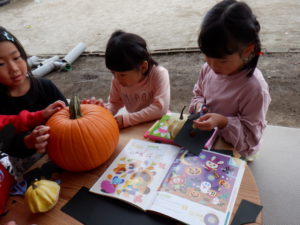 「先生、かぼちゃに顔つけたい!」「どうやってつけるの?」