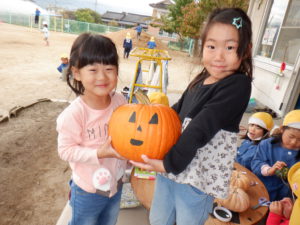 「あぁ~、ハロウィンのかぼちゃだ!」「ハロウィンのかぼちゃって顔がついているよね。」