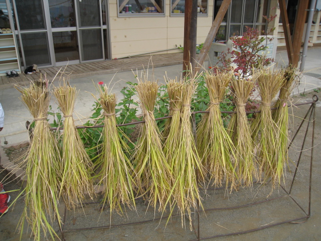 収穫した稲は”はぜかけ”をしてしばらく乾かします。