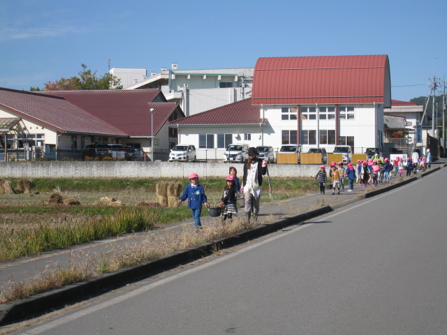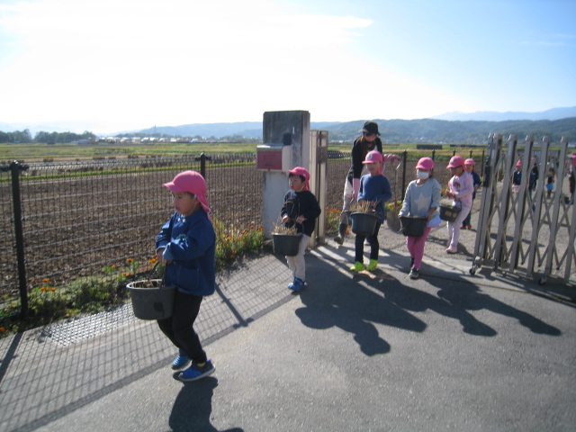 みんなで地域の方の田んぼにいただいた土を返しに行きました。