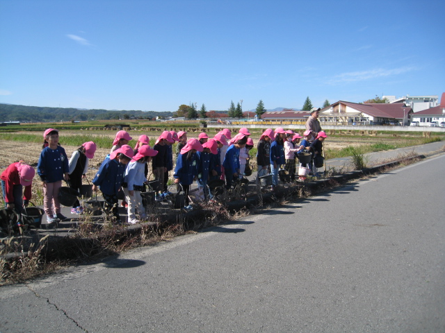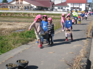 最後にみんなで、田んぼに向かってお礼の言葉を言いました。