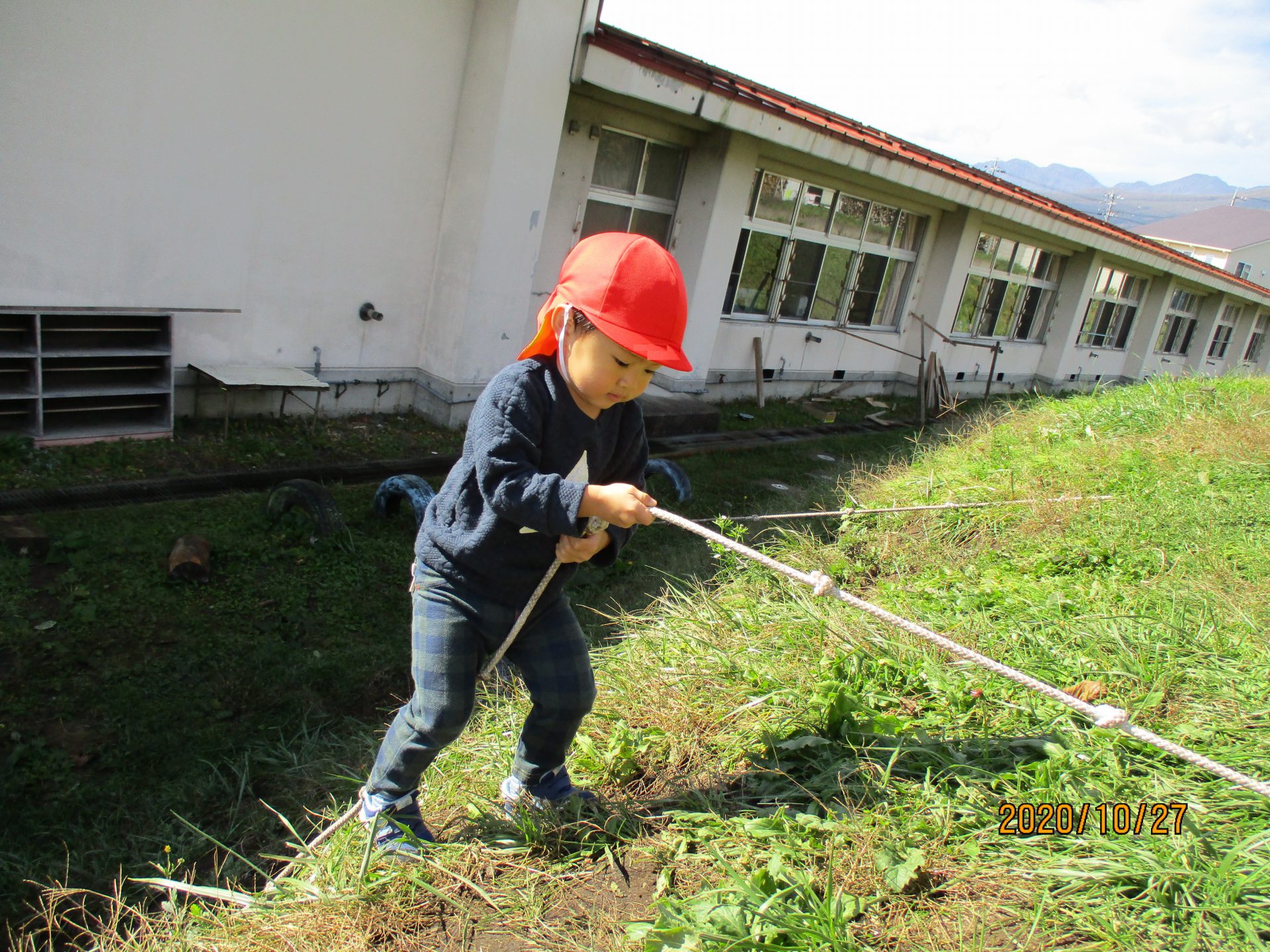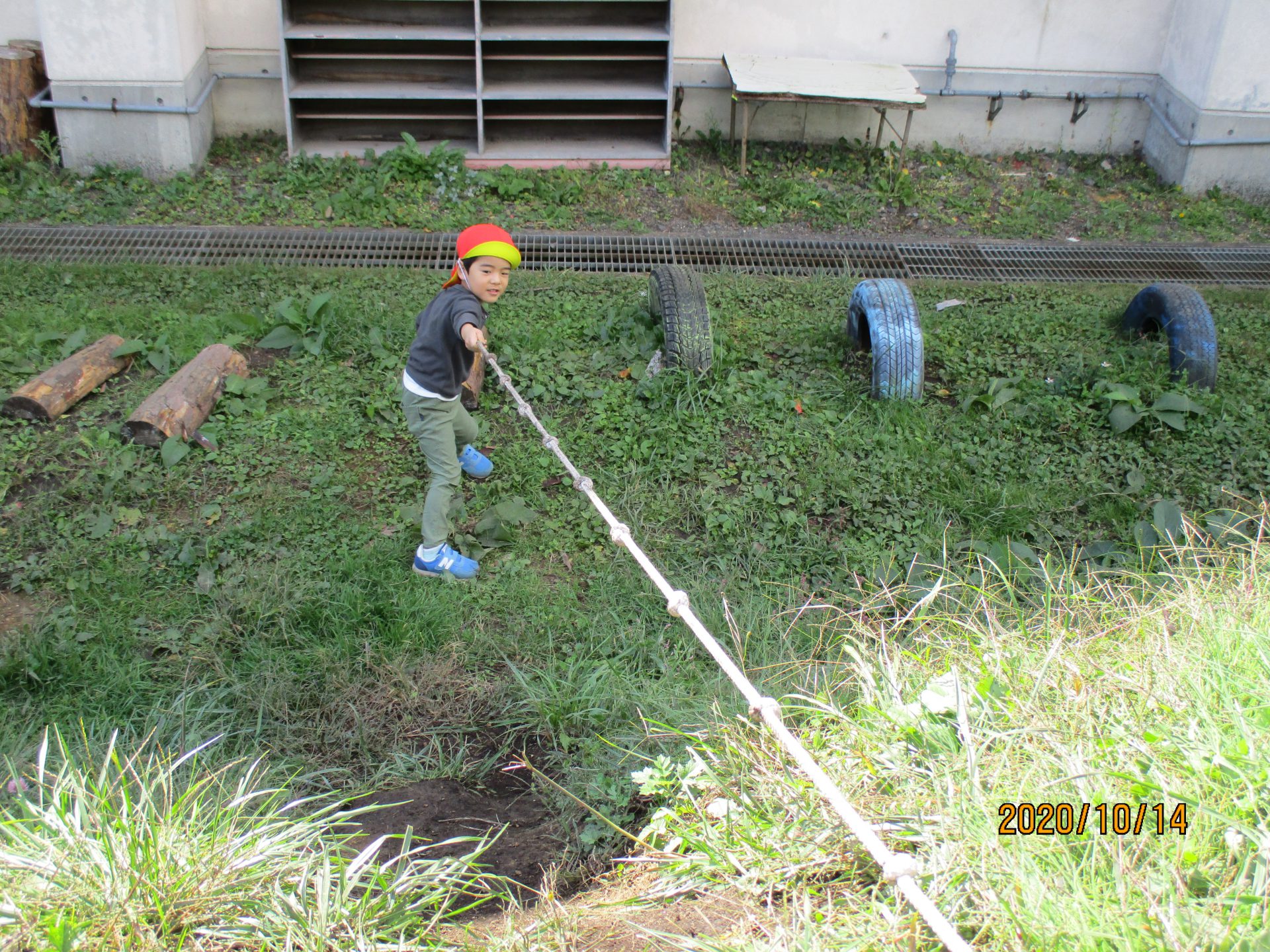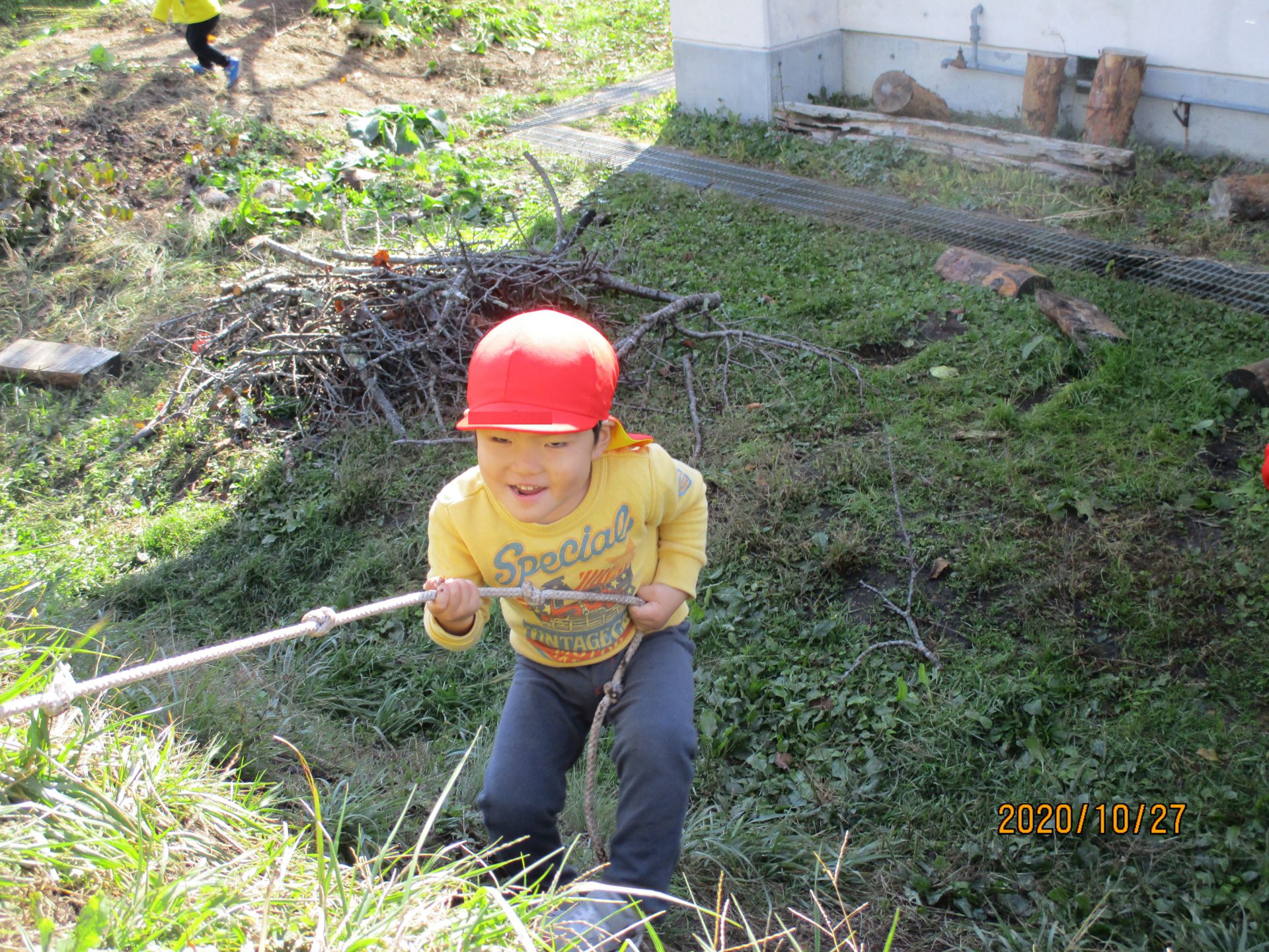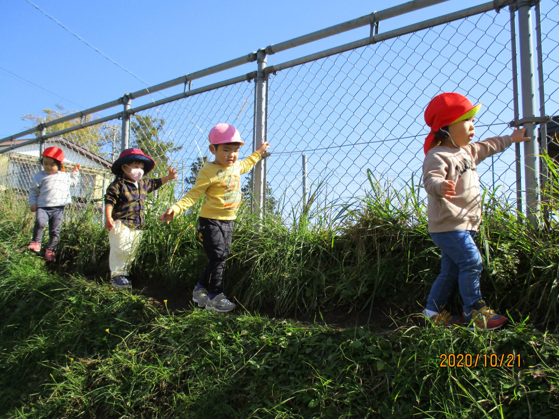 戸外で遊ぶ中で様々な動きや姿勢を伴う遊びを楽しんでいる子どもたち。繰り返し楽しみ、十分に経験することで自分の体をコントロールし、自らの身体感覚を高めていることが感じられます。これからも、十分な時間を確保し、一人ひとりが“やってみたい””もう一度やろう”とじっくりと遊び、そこで得られる“できた”という満足感や喜びを経験できるようにしていきたいです。