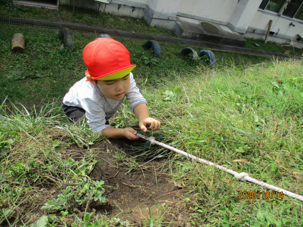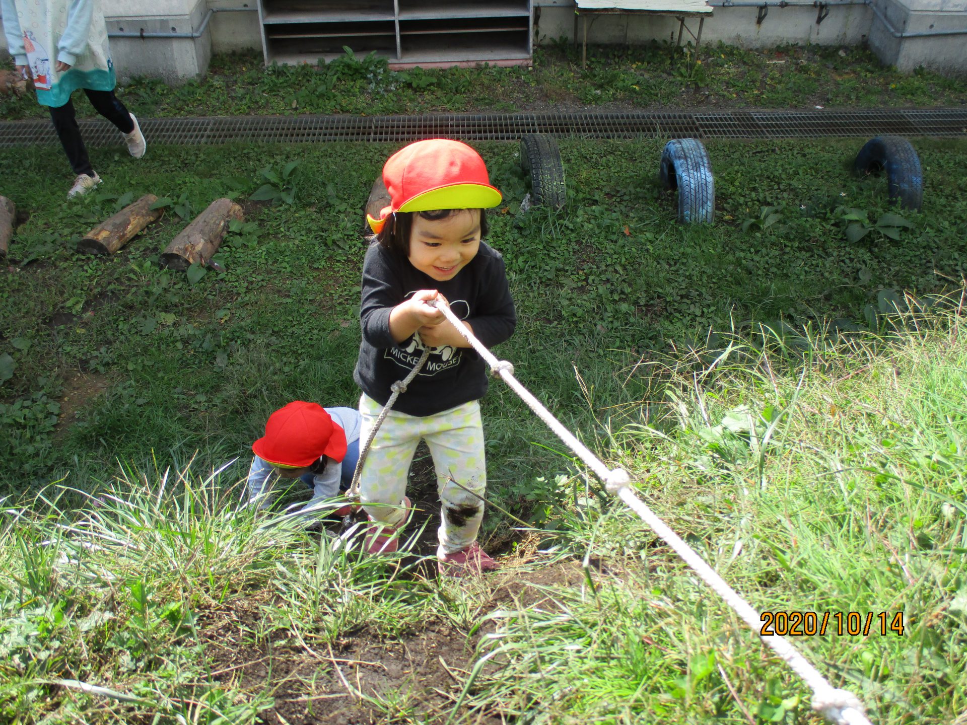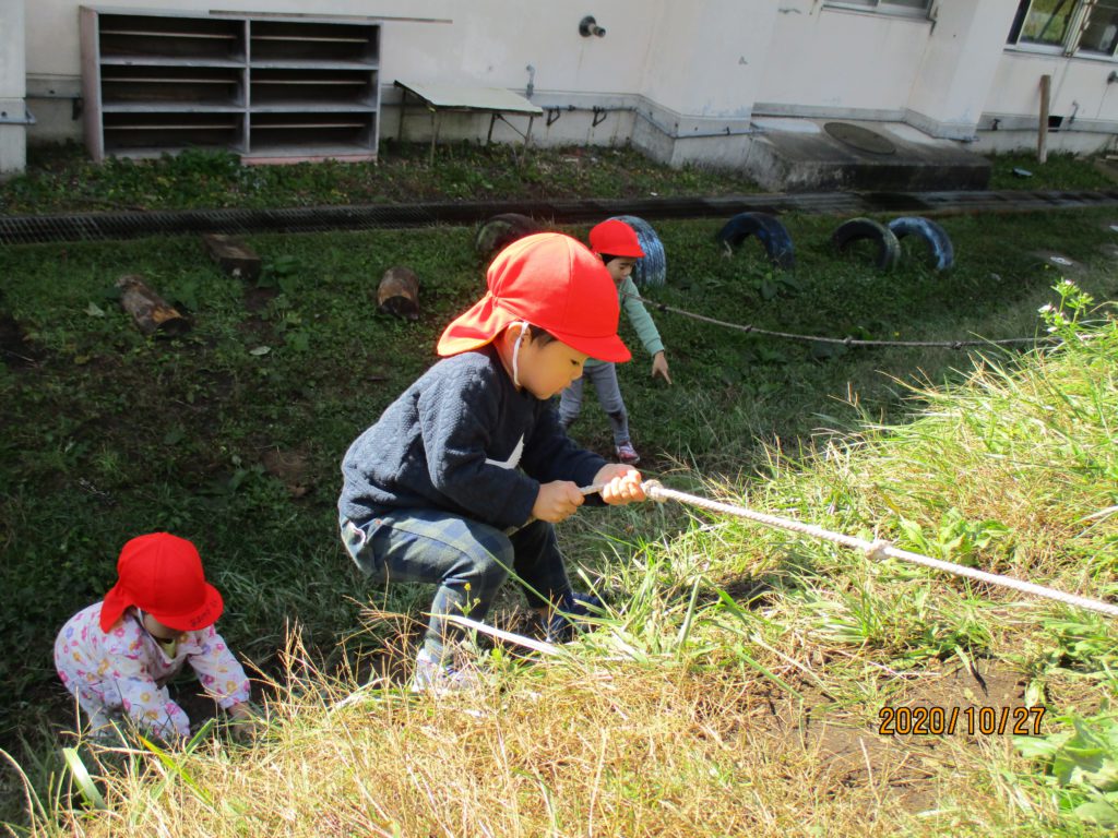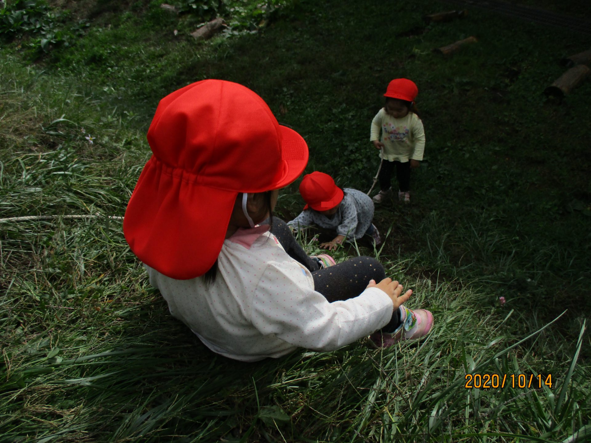 ロープにつかまらなくても、草を掴みながらのぼるお友達もいました。