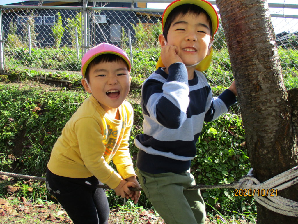 後からのぼってきたお友達とも「すごいね!」「うん!すごいね」とお話も楽しんでいます。