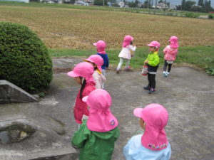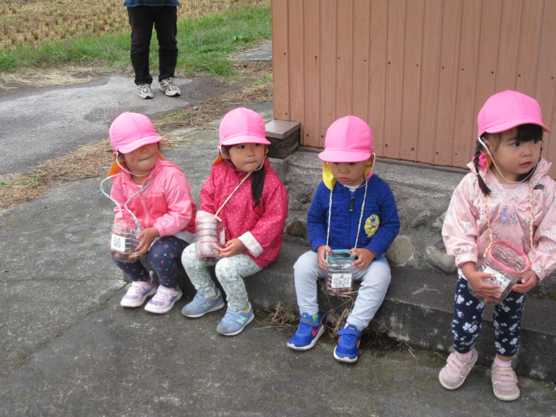 秋のある日、一人ずつ作ってもらったお散歩バッグを提げてお散歩に出かけました!
