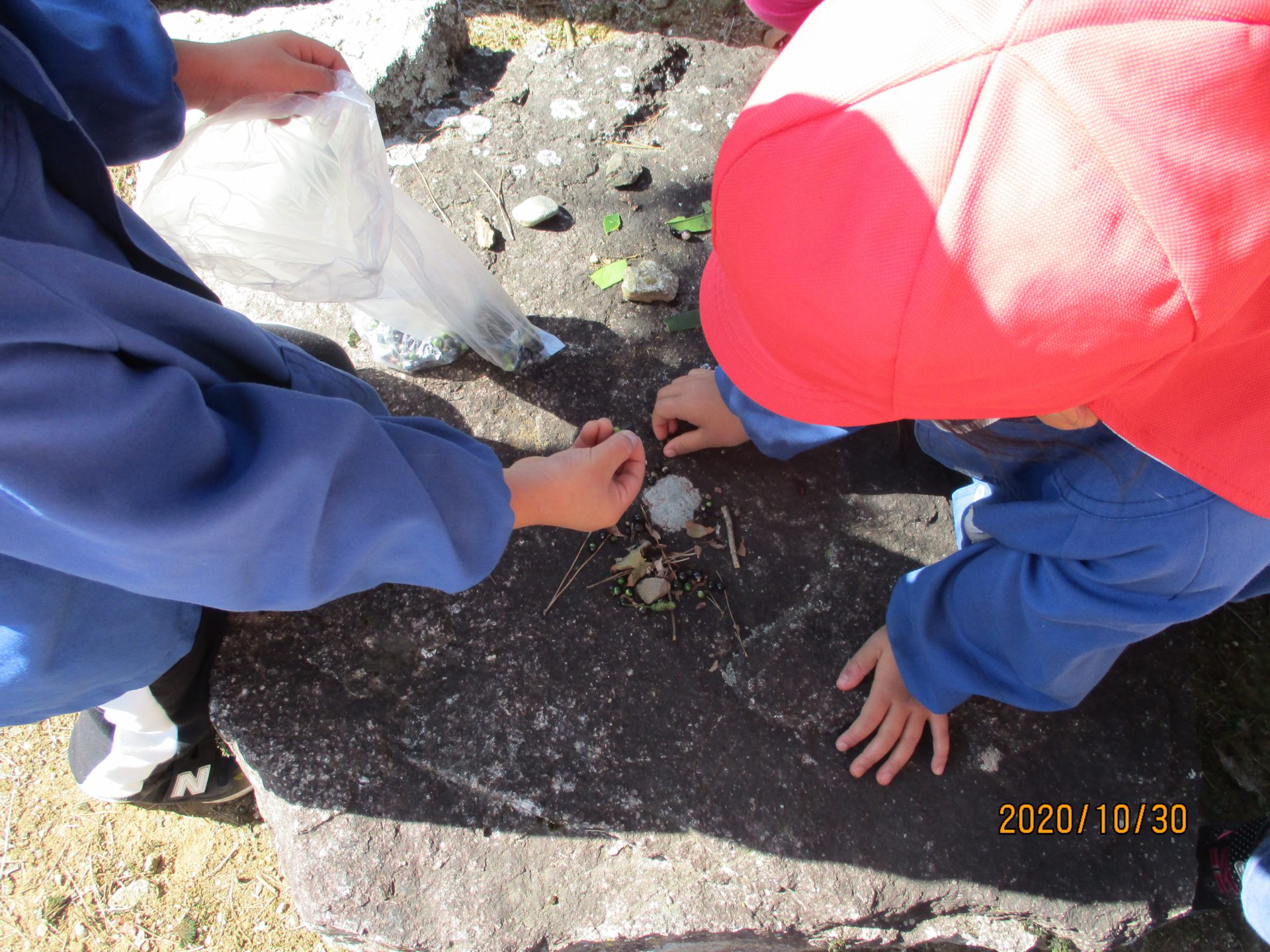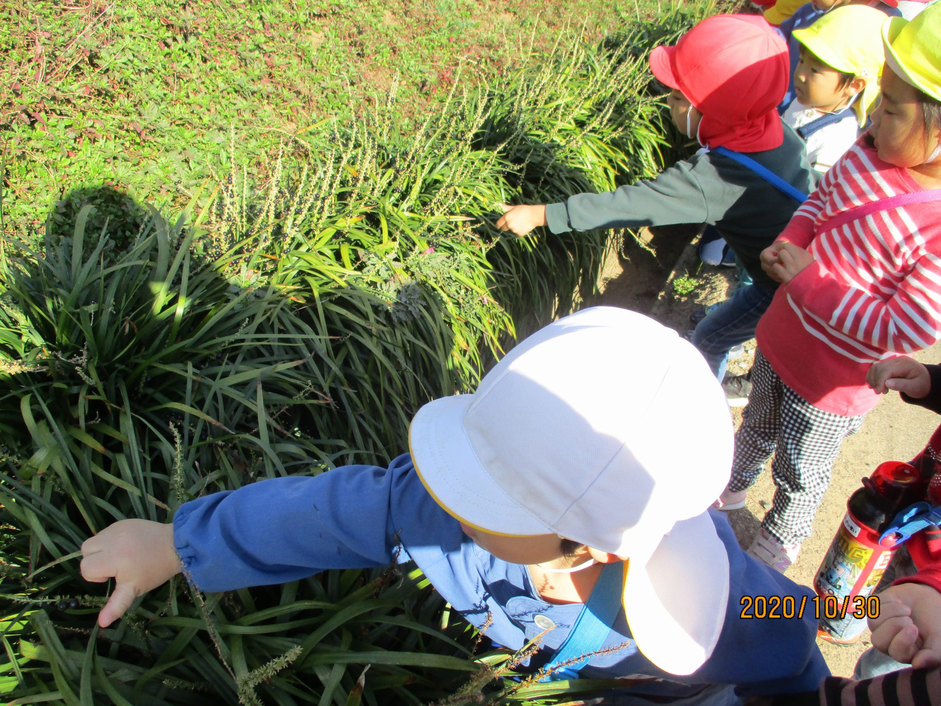 (「リュウノヒゲ」のことを子ども達はリュウノメダマと呼んでいます。)