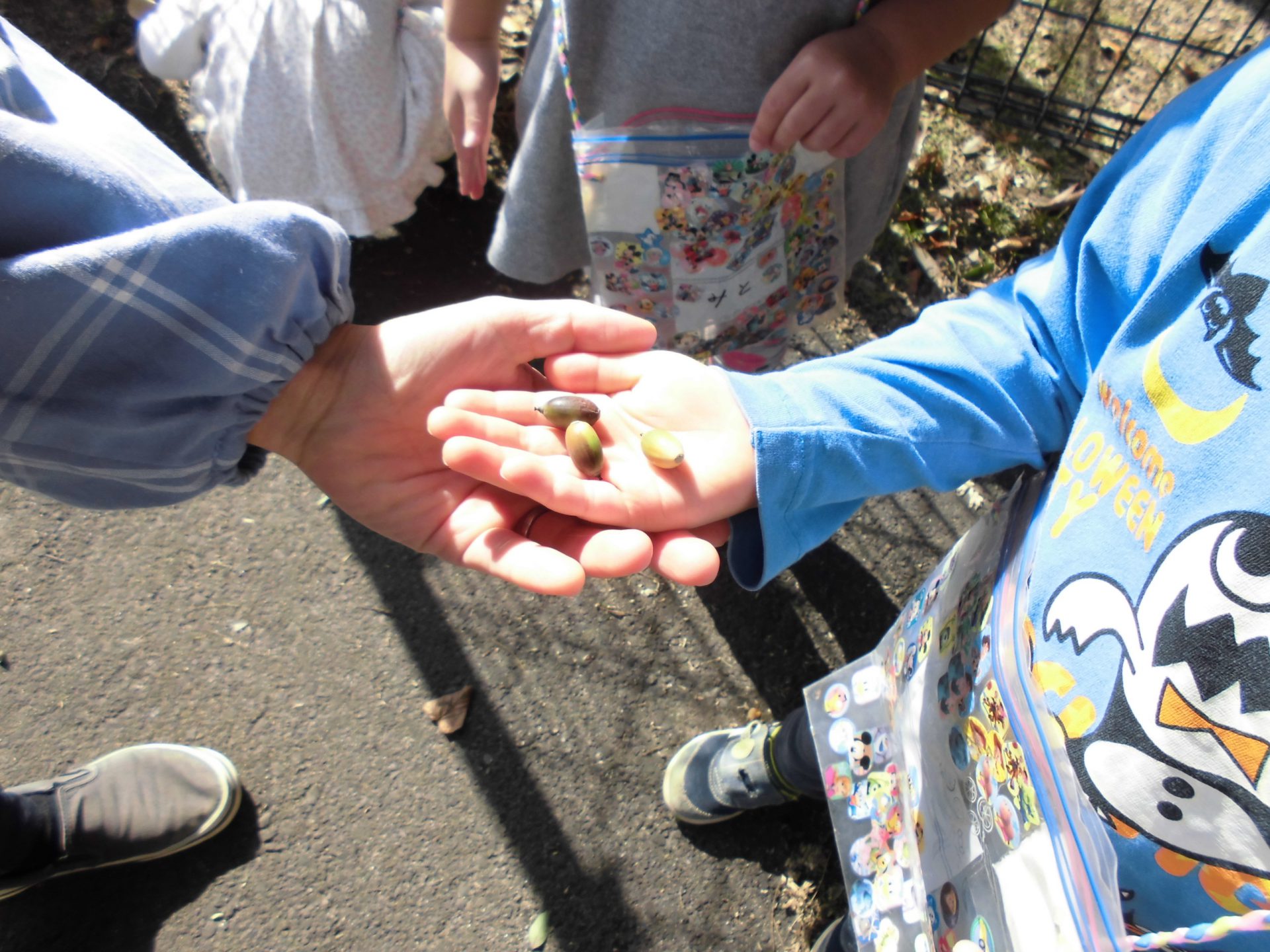 保育士が「あれ?色の違うどんぐりがあるね。」と声をかけると