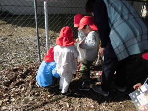 「先生!何かいるよ~」とのⅭくんの声に、お友だちが集まってきました。