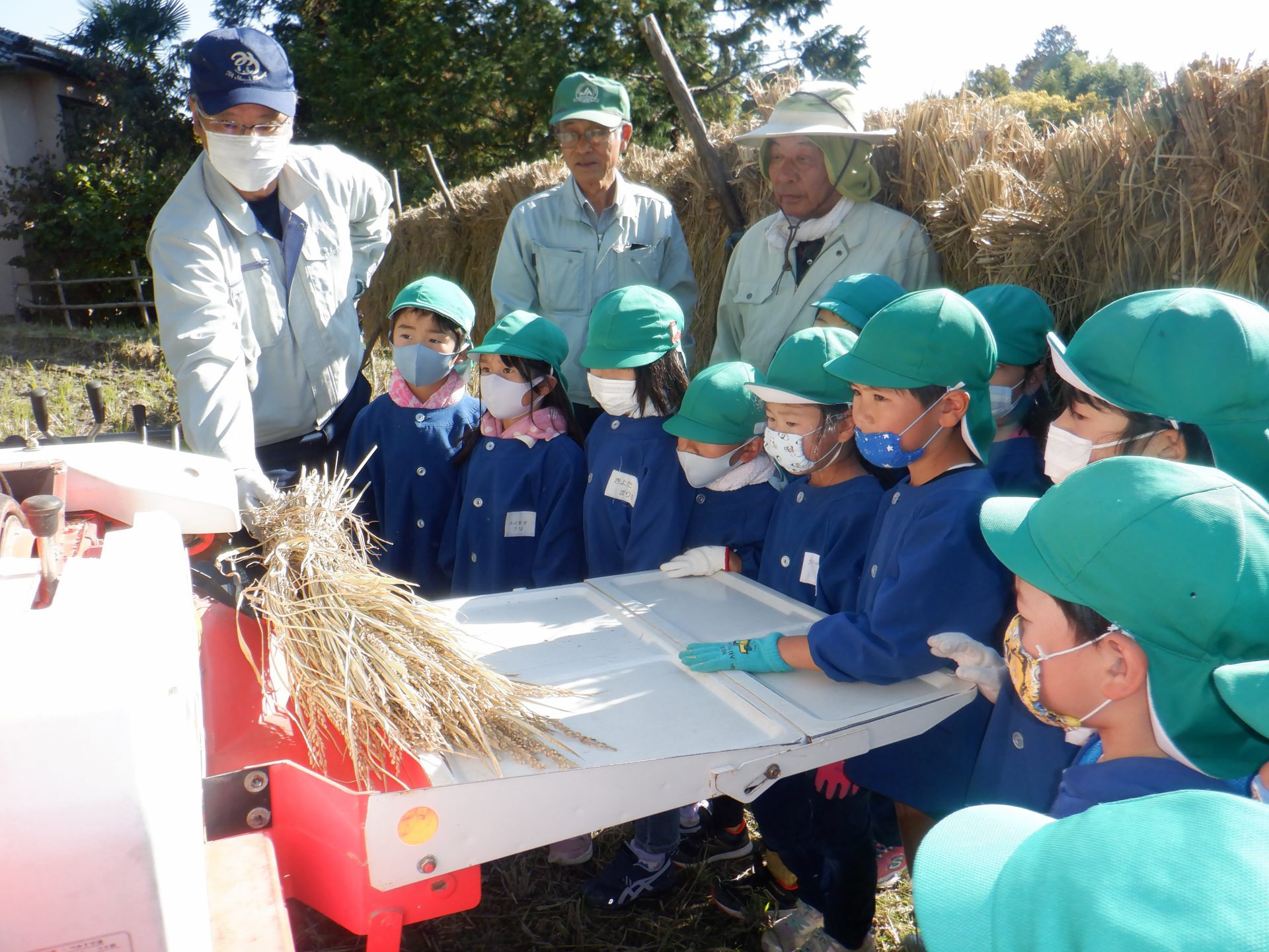 「脱穀って米を取ることだよな」「米は白くないな」機械に入れると籾と藁に分かれることを見て興味を持った。