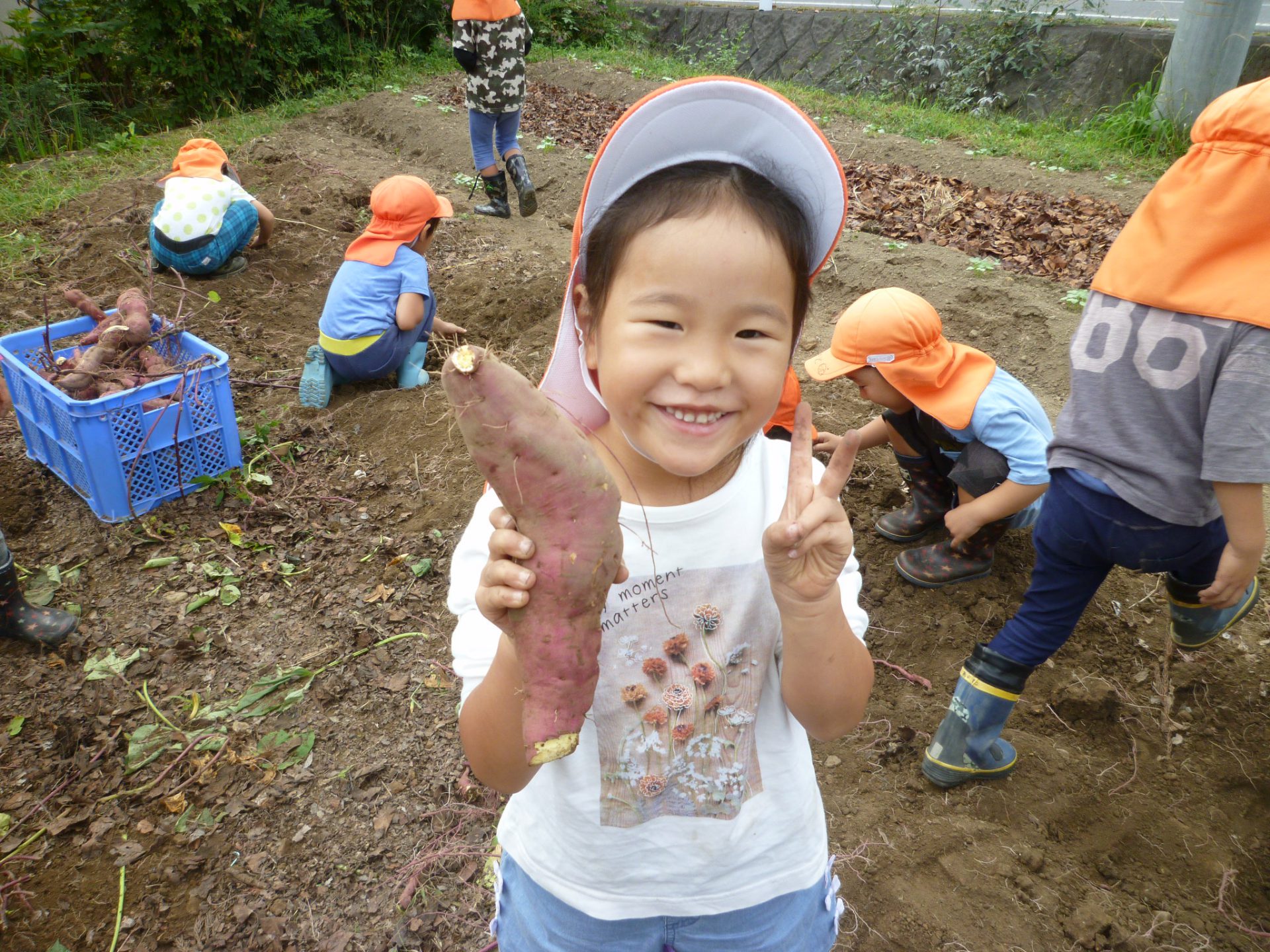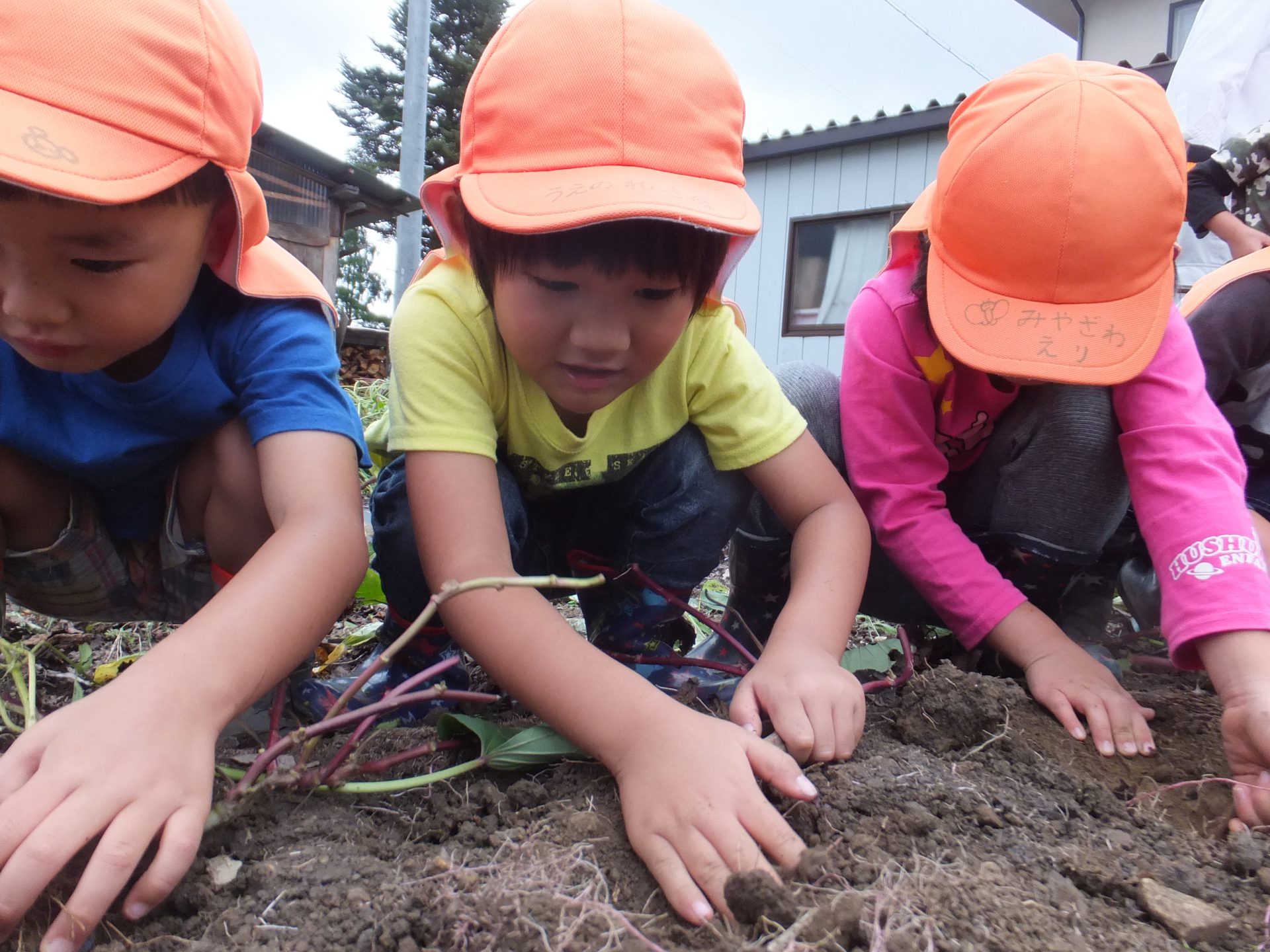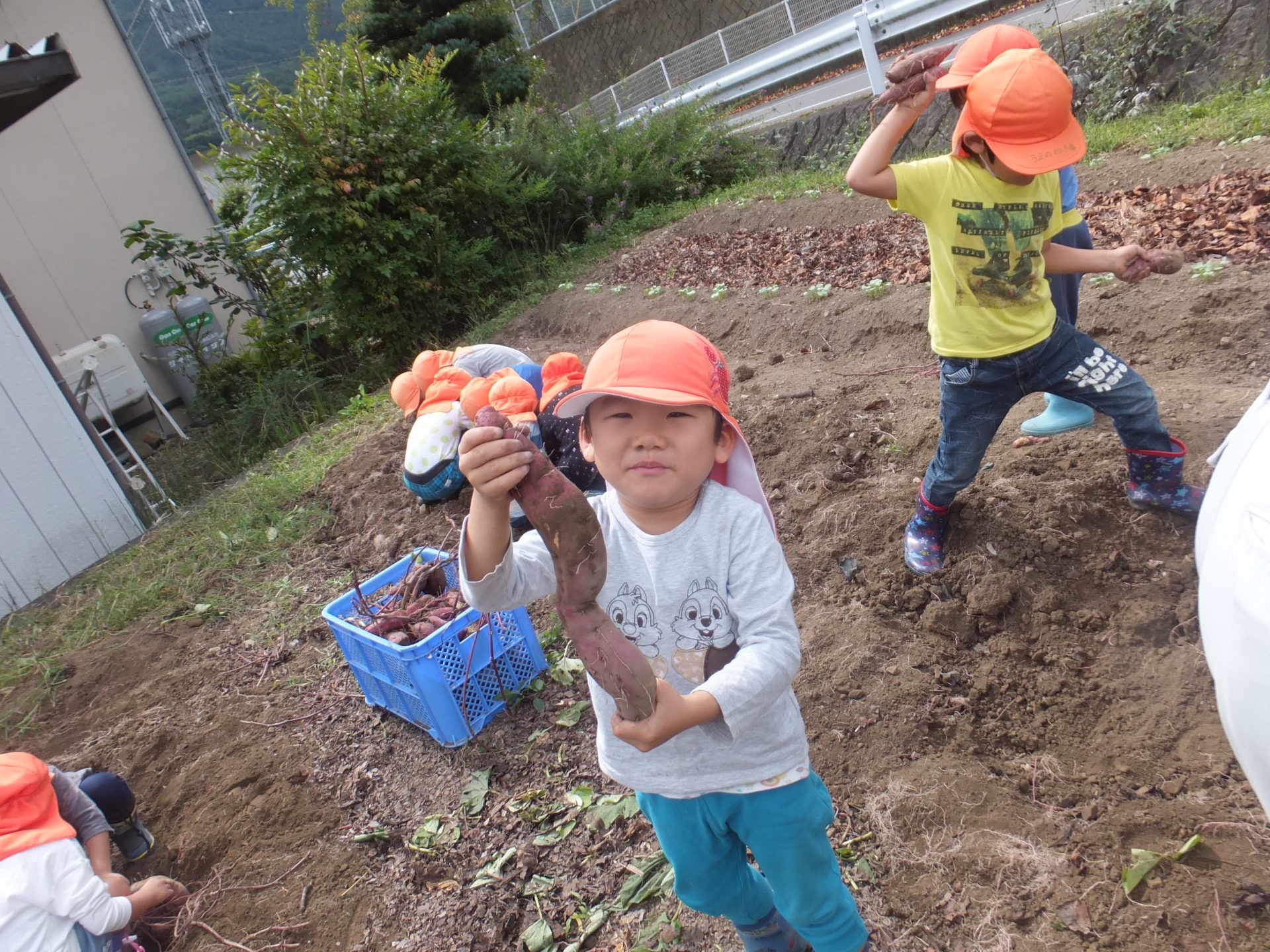 お芋がどんどん掘れてうれしそうな子どもたちです。