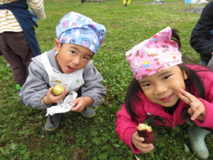9月末にはたくさんのさつま芋が収穫でき、11月に焼き芋会を開いて保育園のみんなに振る舞うことができました。