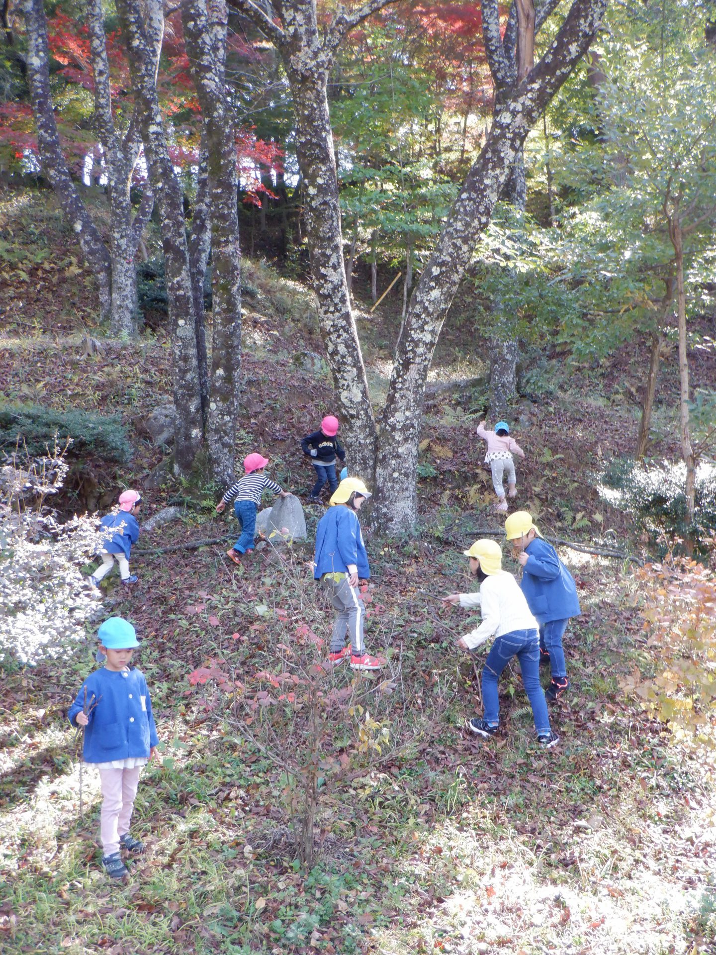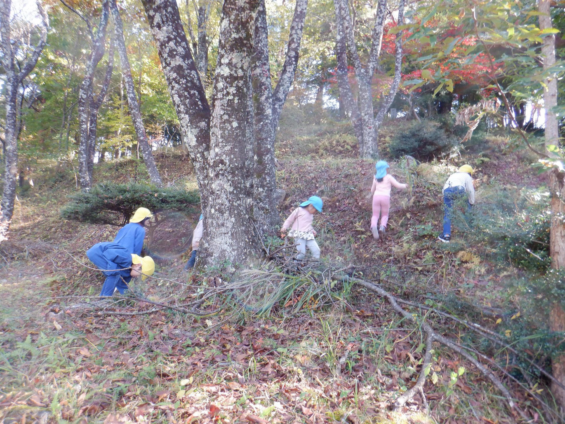山に着くとさっそく焚き木拾いが始まります。「どの木がいいかなぁ・・・?」