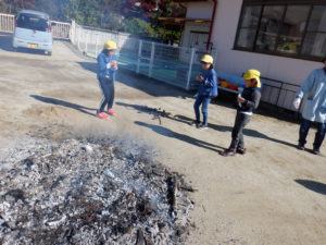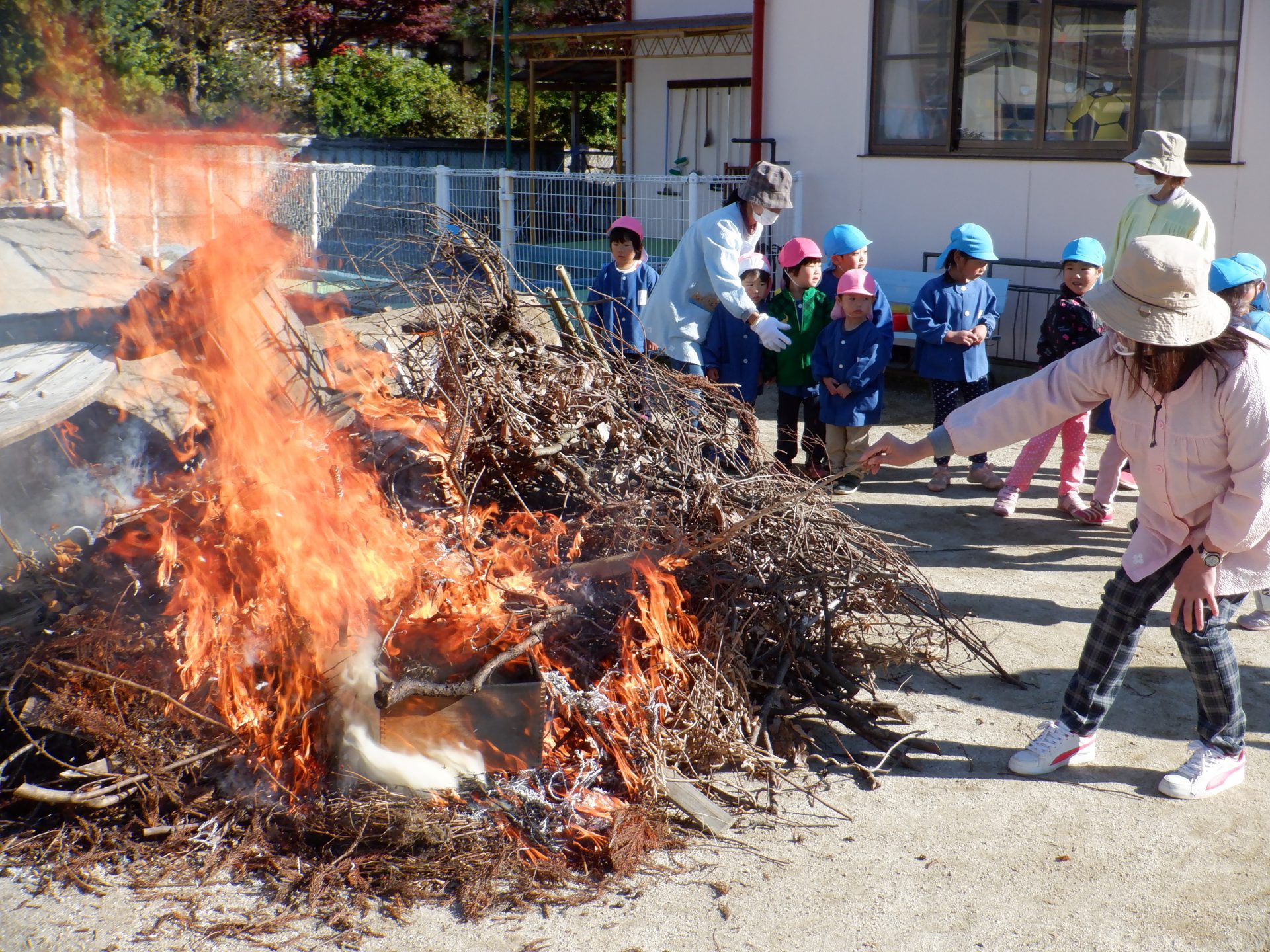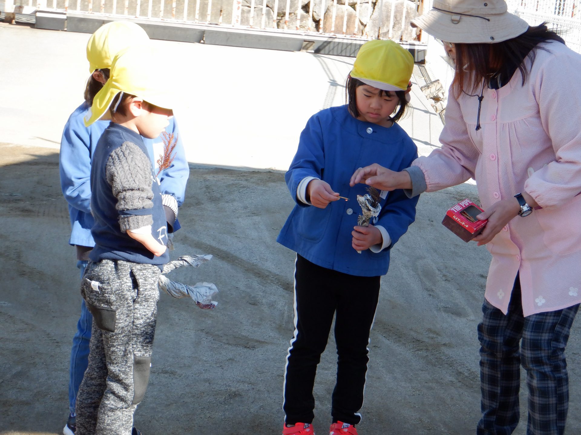 どうやって火をつけるのか子どもたちに聞いてみると、「シュッとやって紙に付けていた。」とマッチという言葉はでてきませんでしたが昨年年長児がしていたことを思い出し保育士に伝えてにきてくれ、こういうところが丸山保育園の異年齢のよさだと感じました。