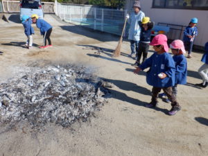 サツマイモの苗を植えた時から焼き芋を楽しみに世話をしてきた子ども達、焚き木拾いも張り切って行うことができ、集まった焚き木の量を見て子どもたちの目的に向かう力の素晴らしさを感じました。
