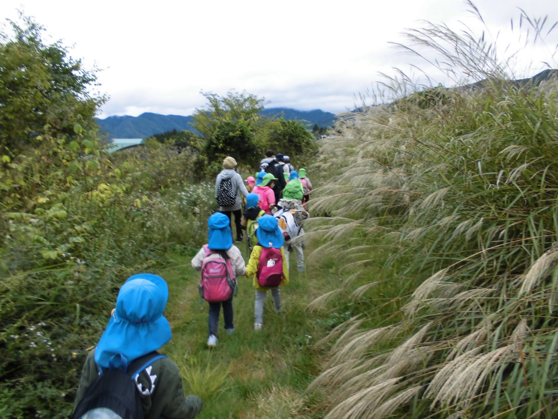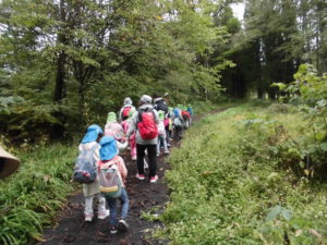 秋の遠足に出発!目的地は、秘密。探検が始まるよ。