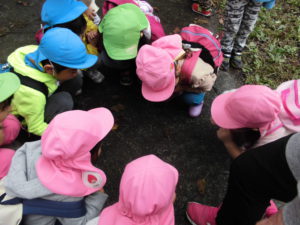 「コンクリートの上じゃかわいそうだね。土に逃がしてあげよう」
