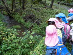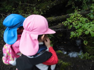 川が流れているね。(みんなで川の音を、じっと聞き入っています)