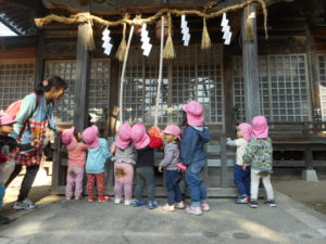 お参りしている子どもたちの後ろ姿からも、元気いっぱいに遊んだ様子を、神様もきっと喜んでいるでしょうね。