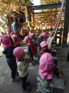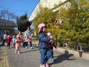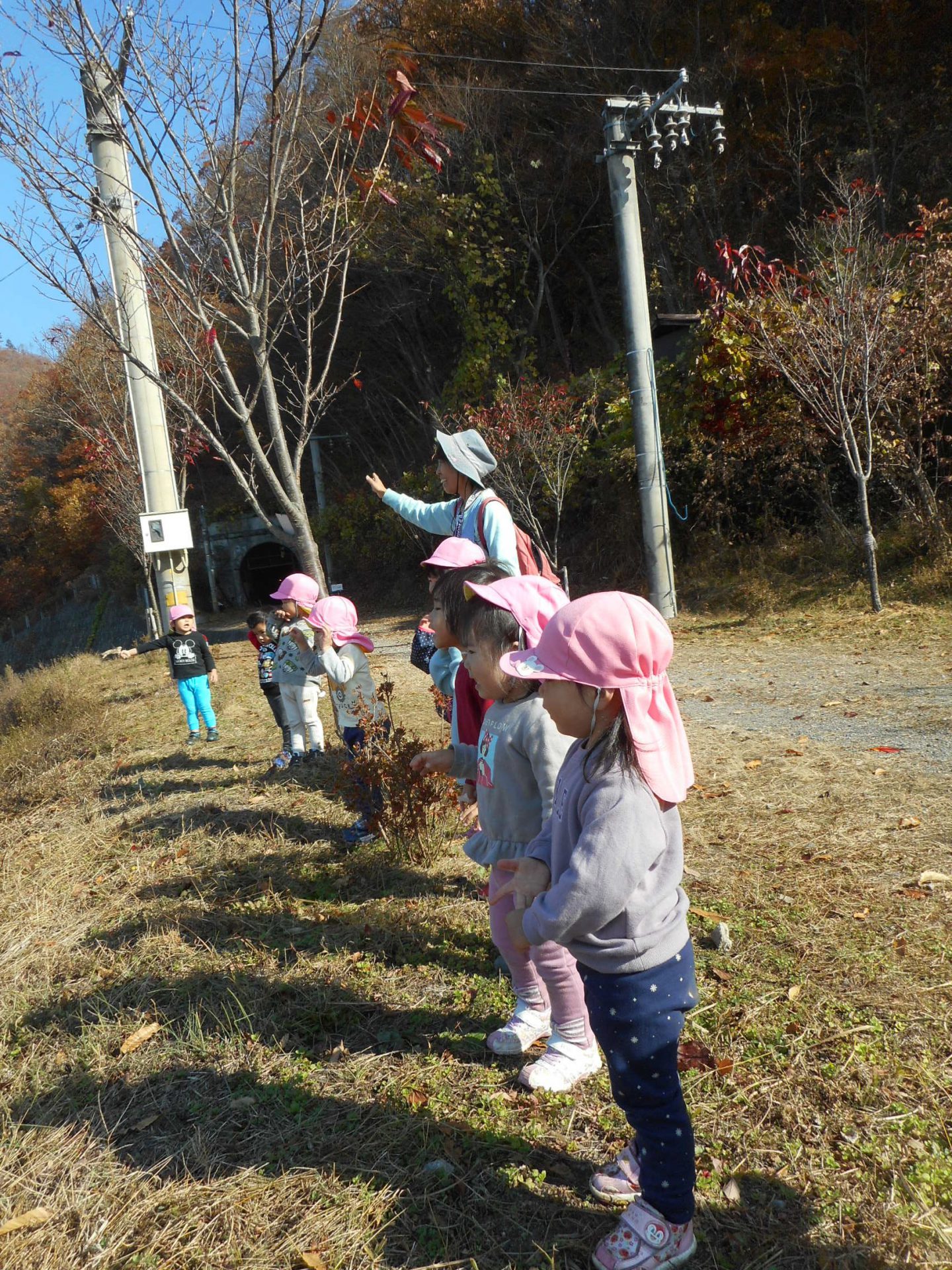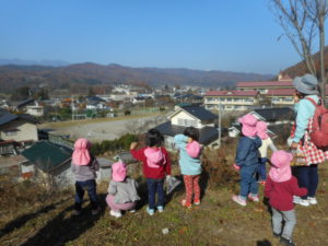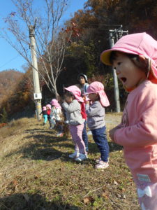 園庭から見える山々が日々、姿を変えていくのを見ているだけでなく、青空が広がった秋の日に子どもたちと歩いてみることにしました。