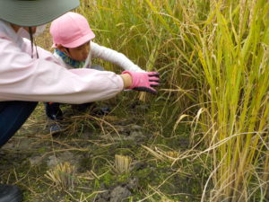 ・お田植や稲刈りを体験する機会も少なくなってきました。自分たちで体験することで、お米作りの大変さや収穫の喜びを感じることが出来、食べ物を大事にしようとする気持ちが育つのではないでしょうか。