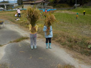 ・「お米作りを田植えから体験することが大事なんだよ。」という気持ちで田んぼや脱穀の機械を貸してくださる地域の方のご好意に感謝いたします。