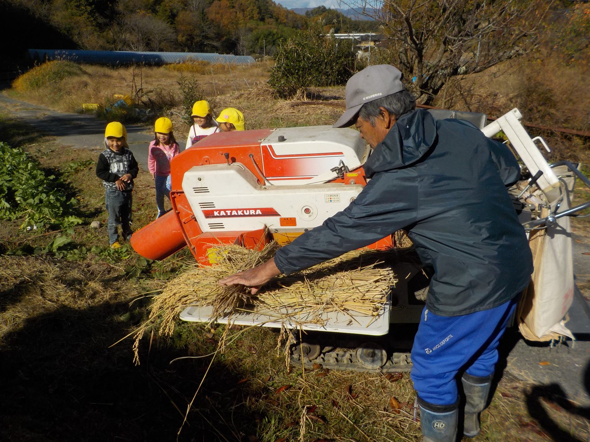 春先に年長児がお田植えした苗が生長して、今年も見事に実りました。