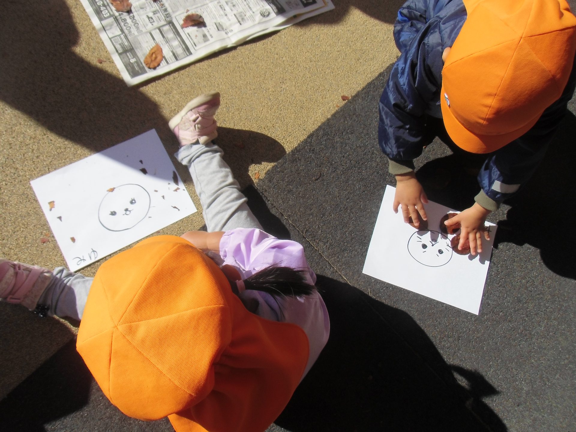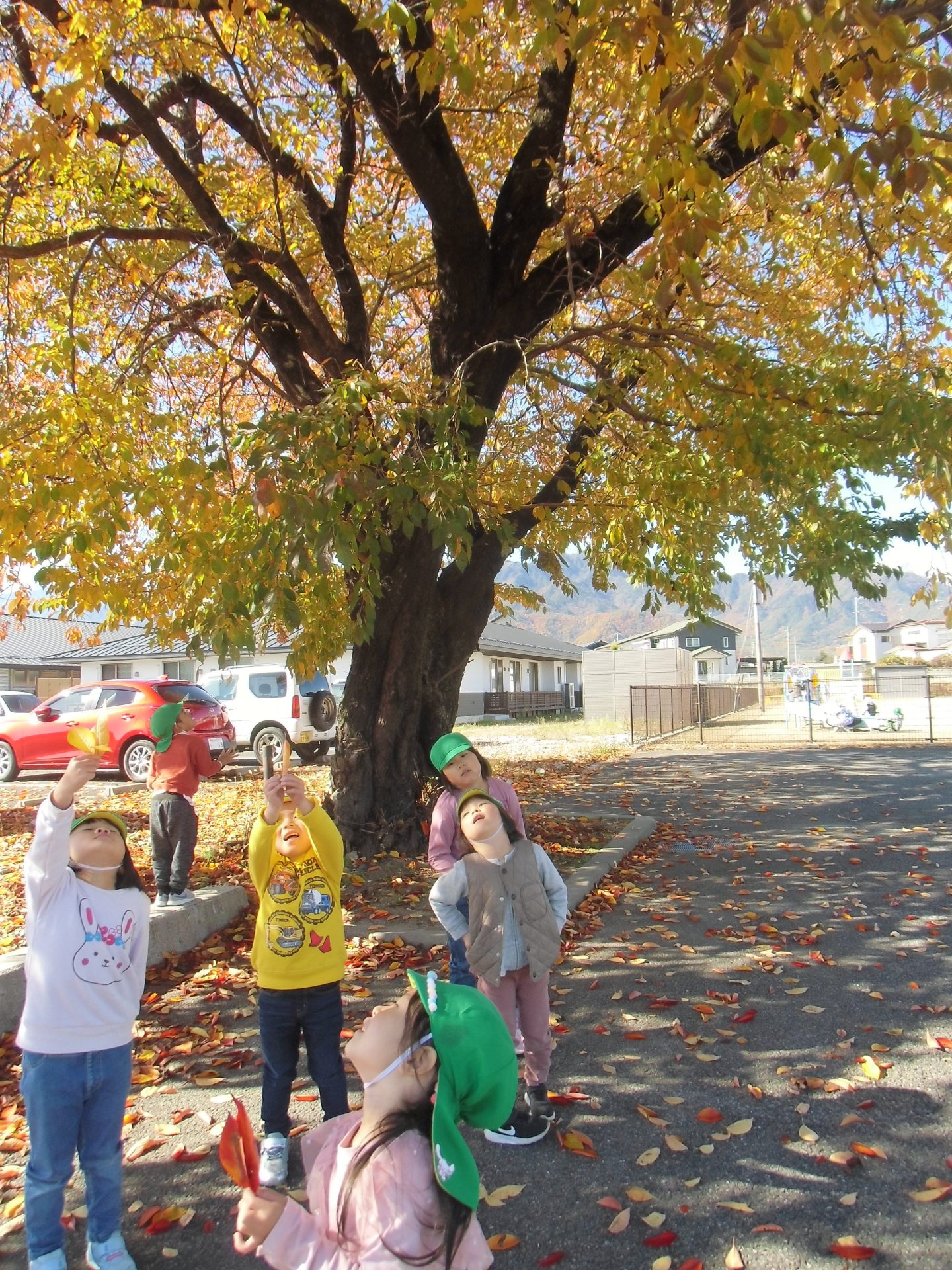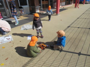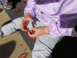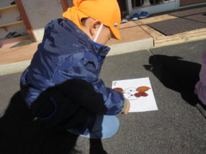 駐車場の桜の木の葉っぱも落ち、色を見たり、触ったりしました。
