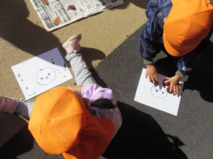 おやおや、2歳児部屋の前で何かやっているよ。見に行ってみよう!