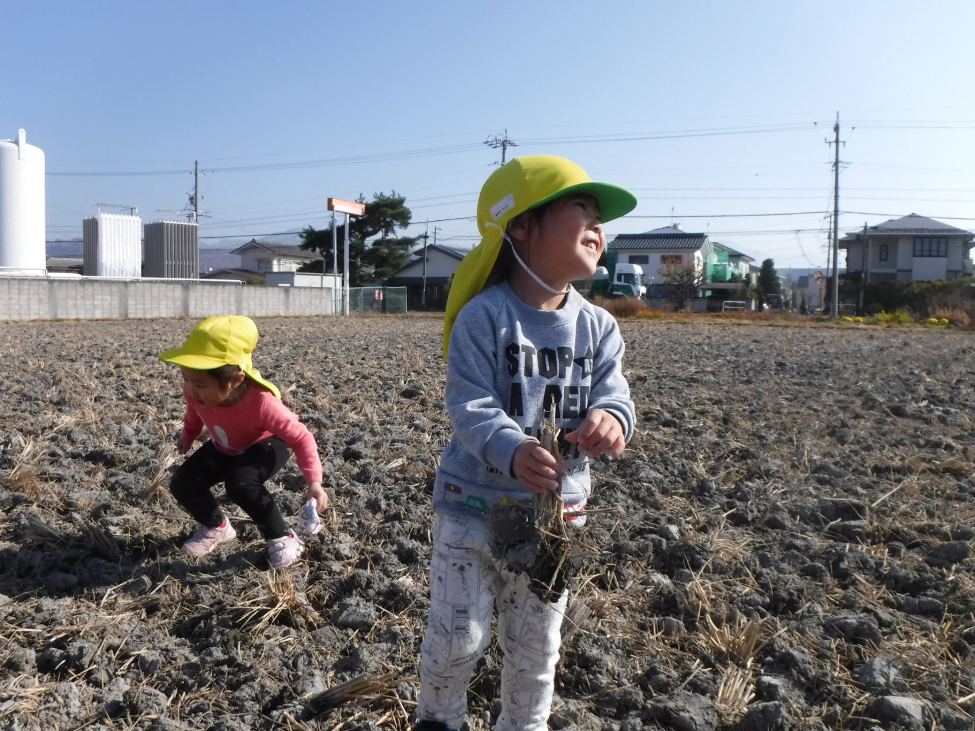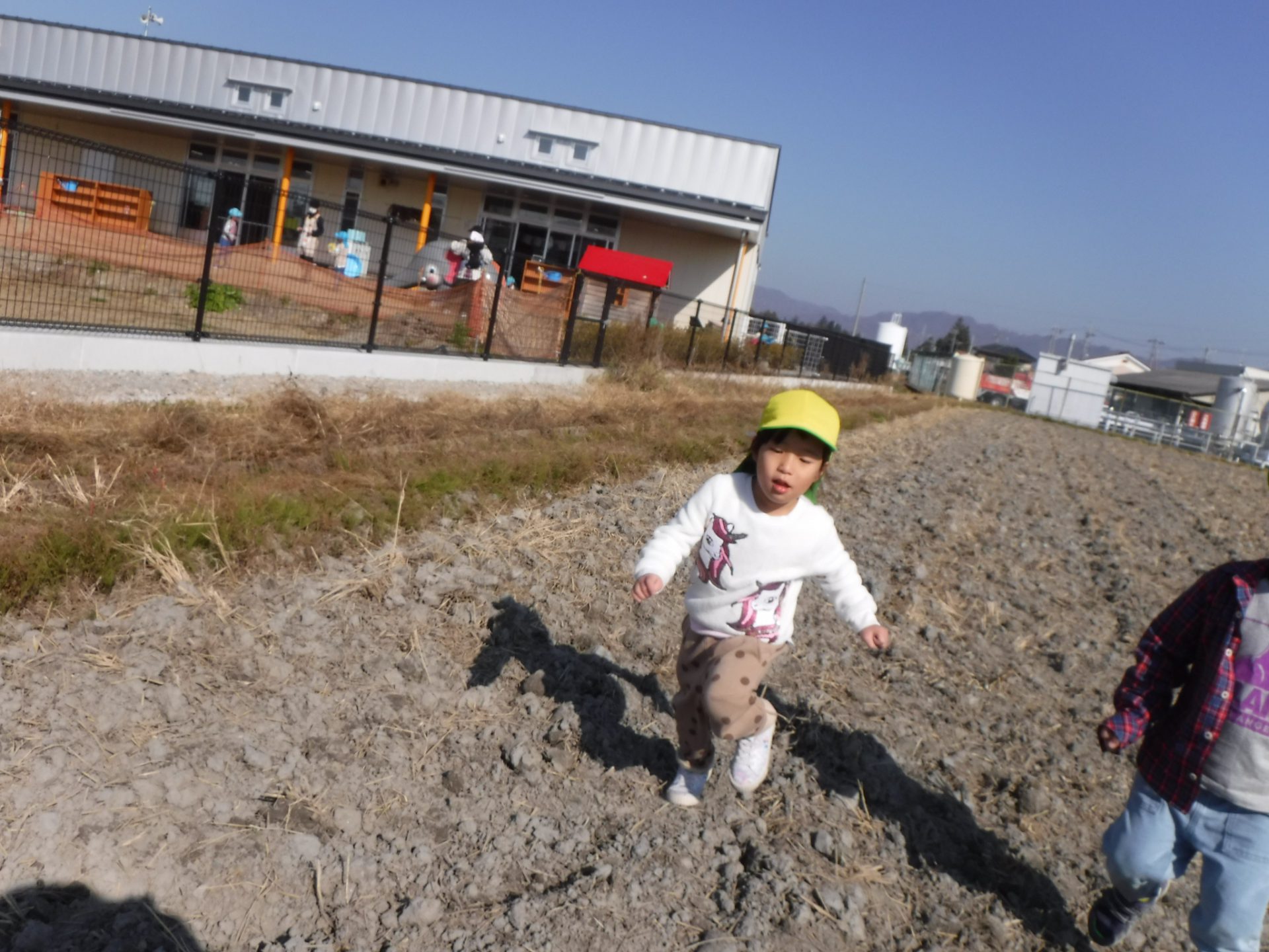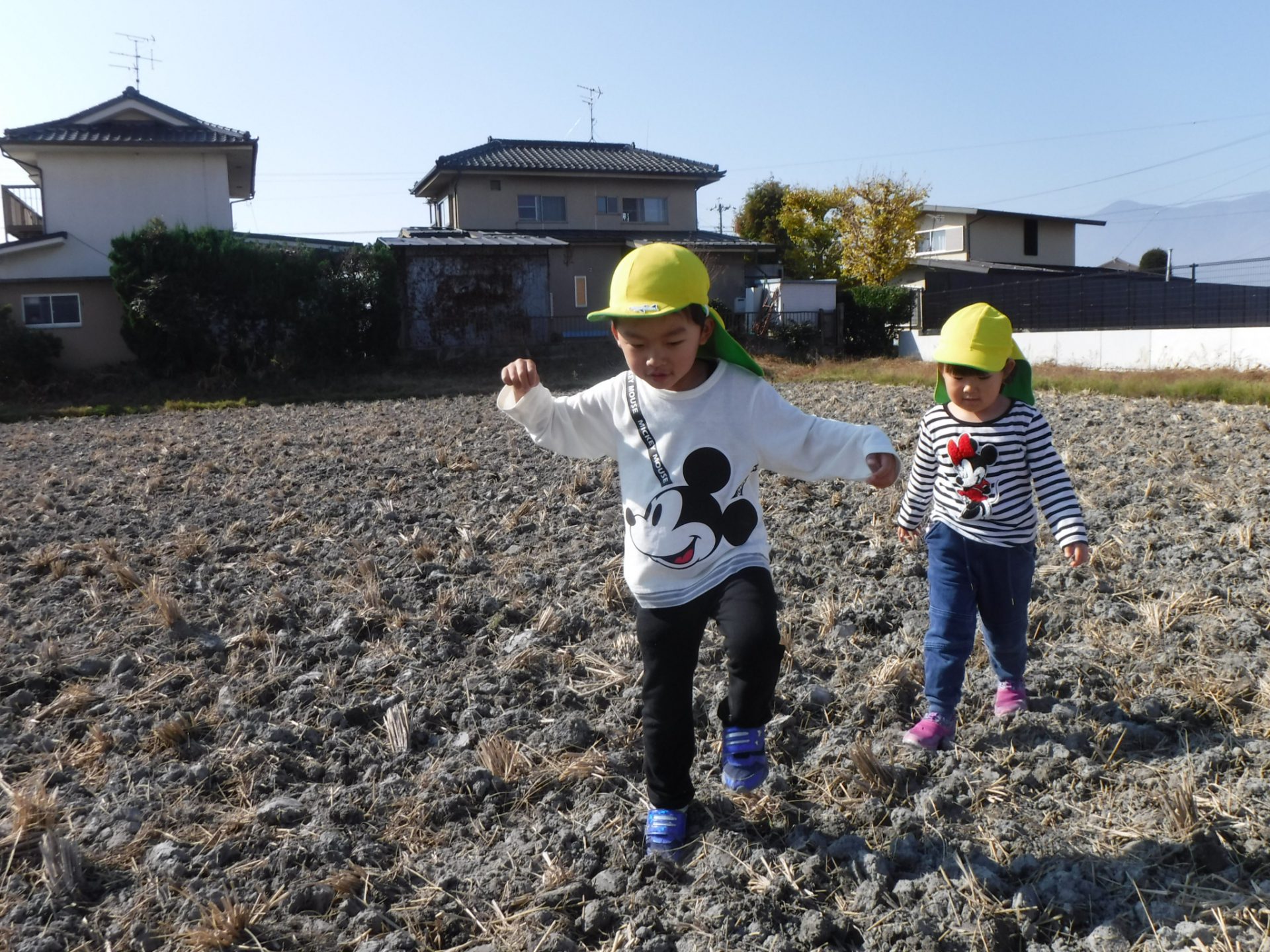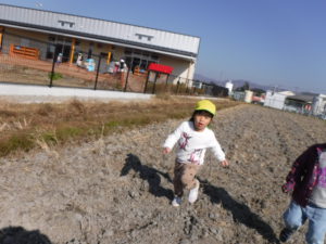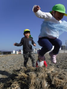園の隣にある、収穫後の田んぼを貸して頂き、自由に遊んでいます。