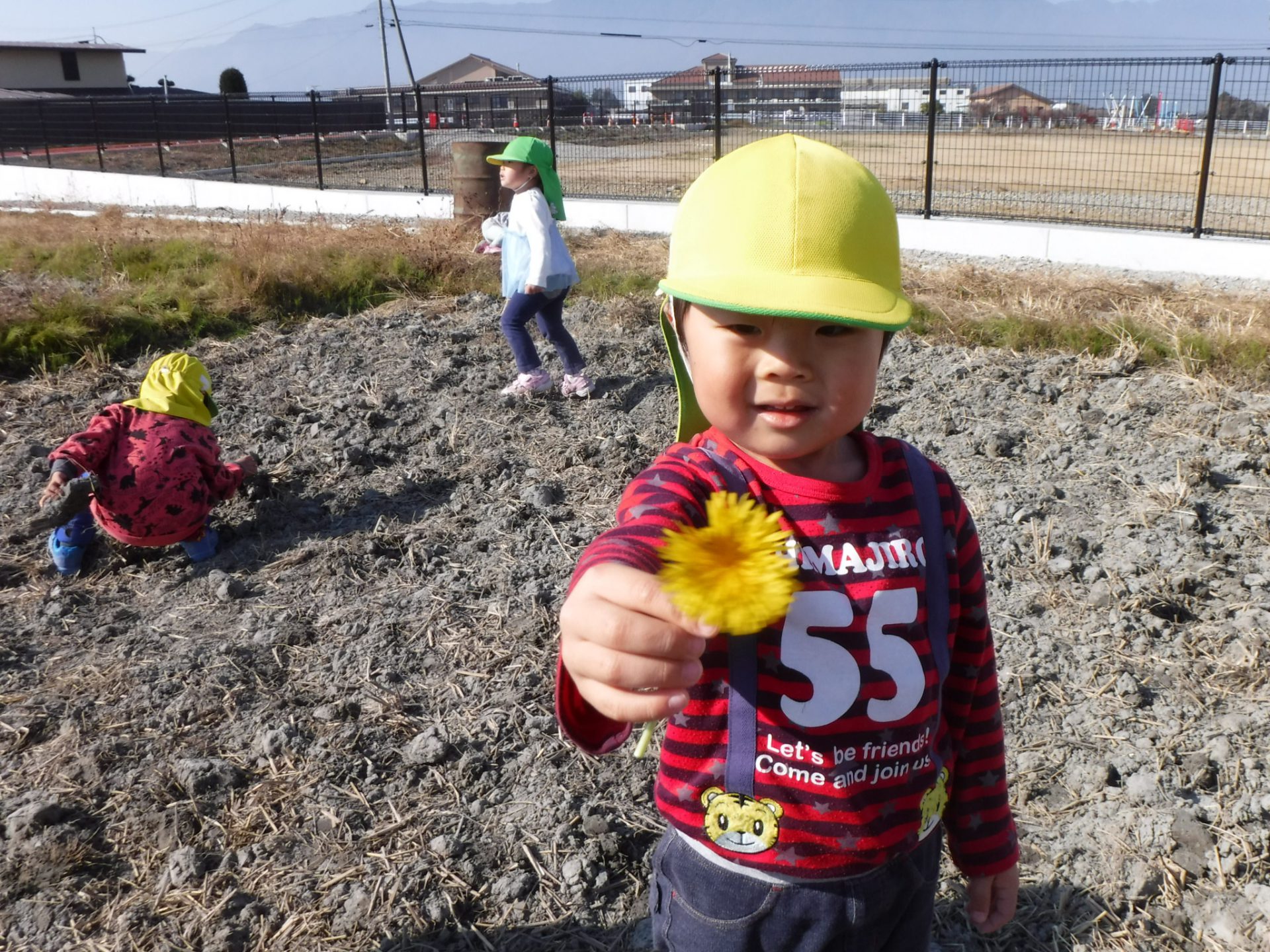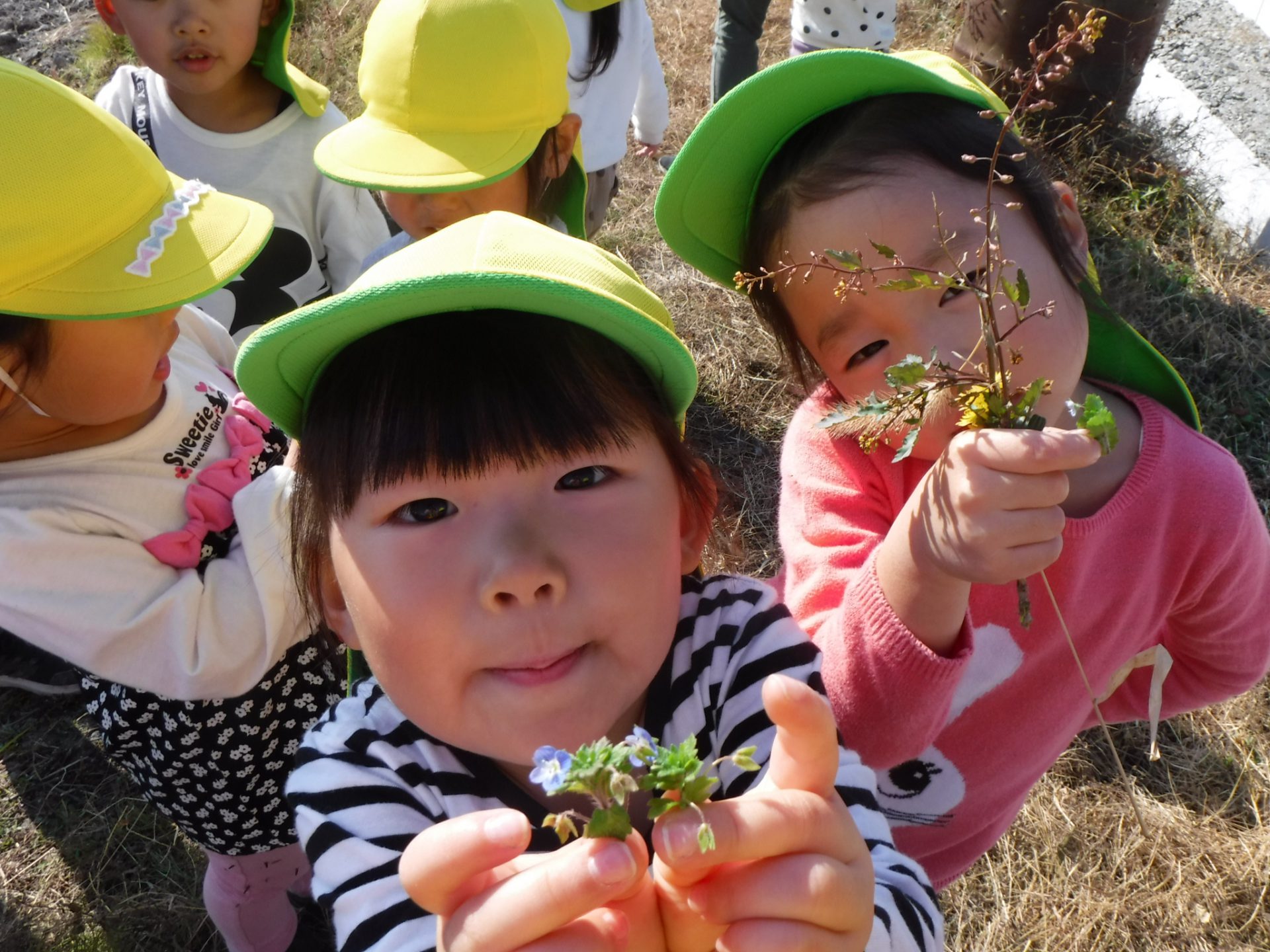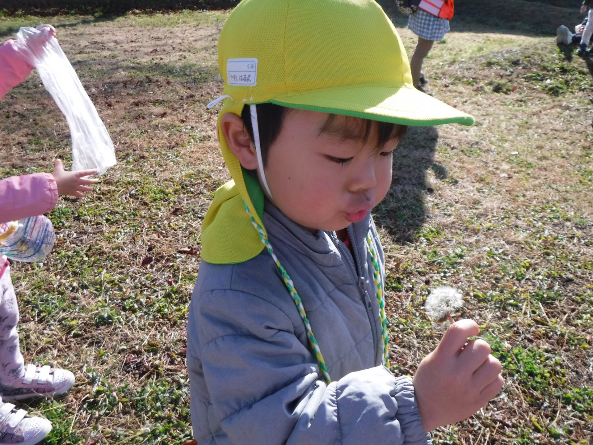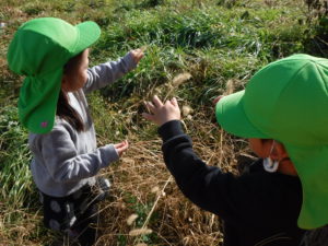 寒いのに咲いているお花もあれば、枯れているものもあることに気がつきました。見たり触ったりしながら秋から冬へと移り行く季節を感じていました。